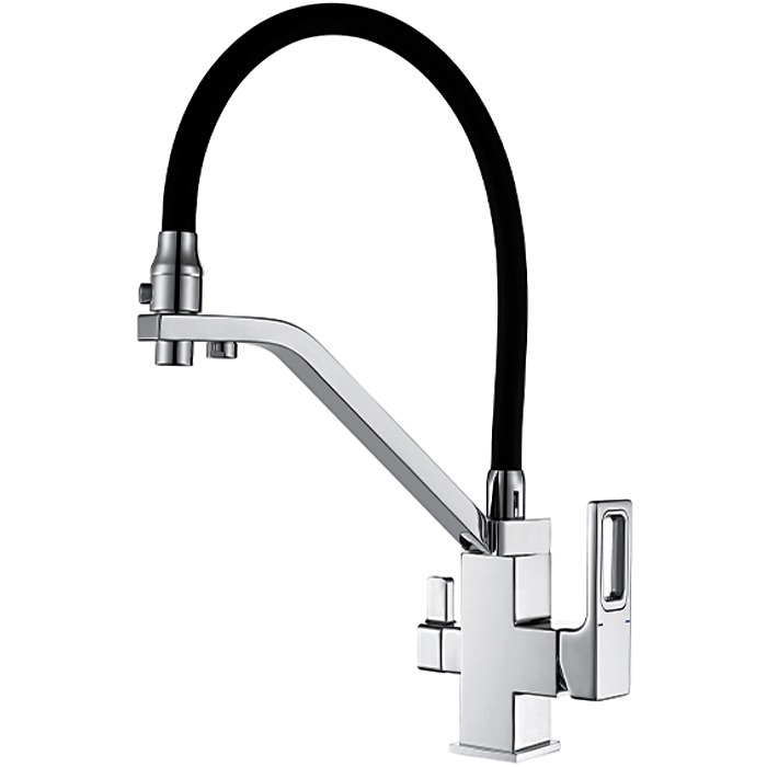 Смеситель для кухни Gappo G4318 с гибким, поворотным изливом и подключением фильтра питьевой воды , материал - латунь, цвет - черный/хром.