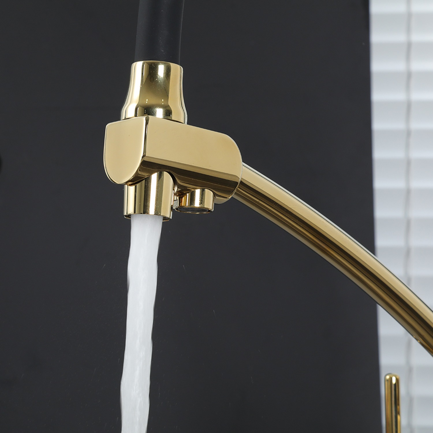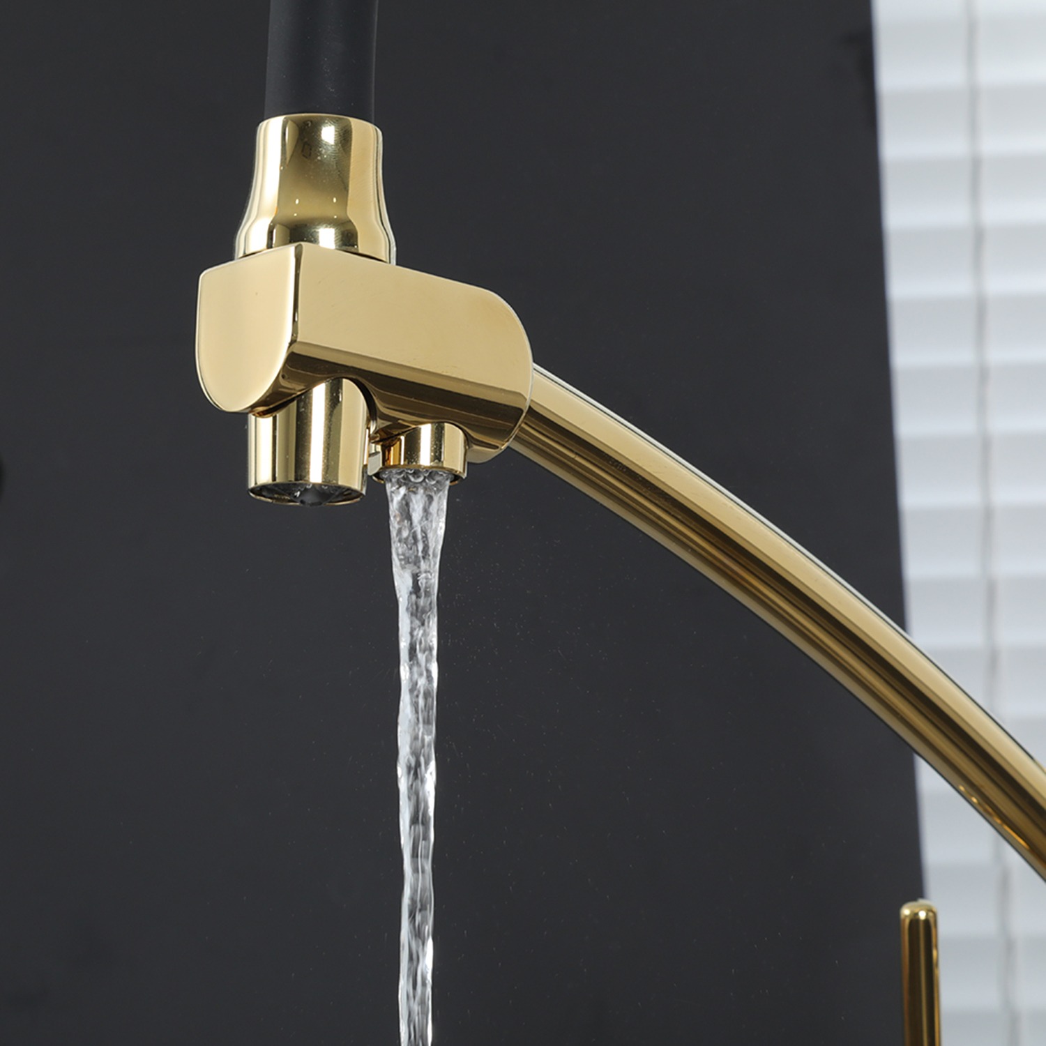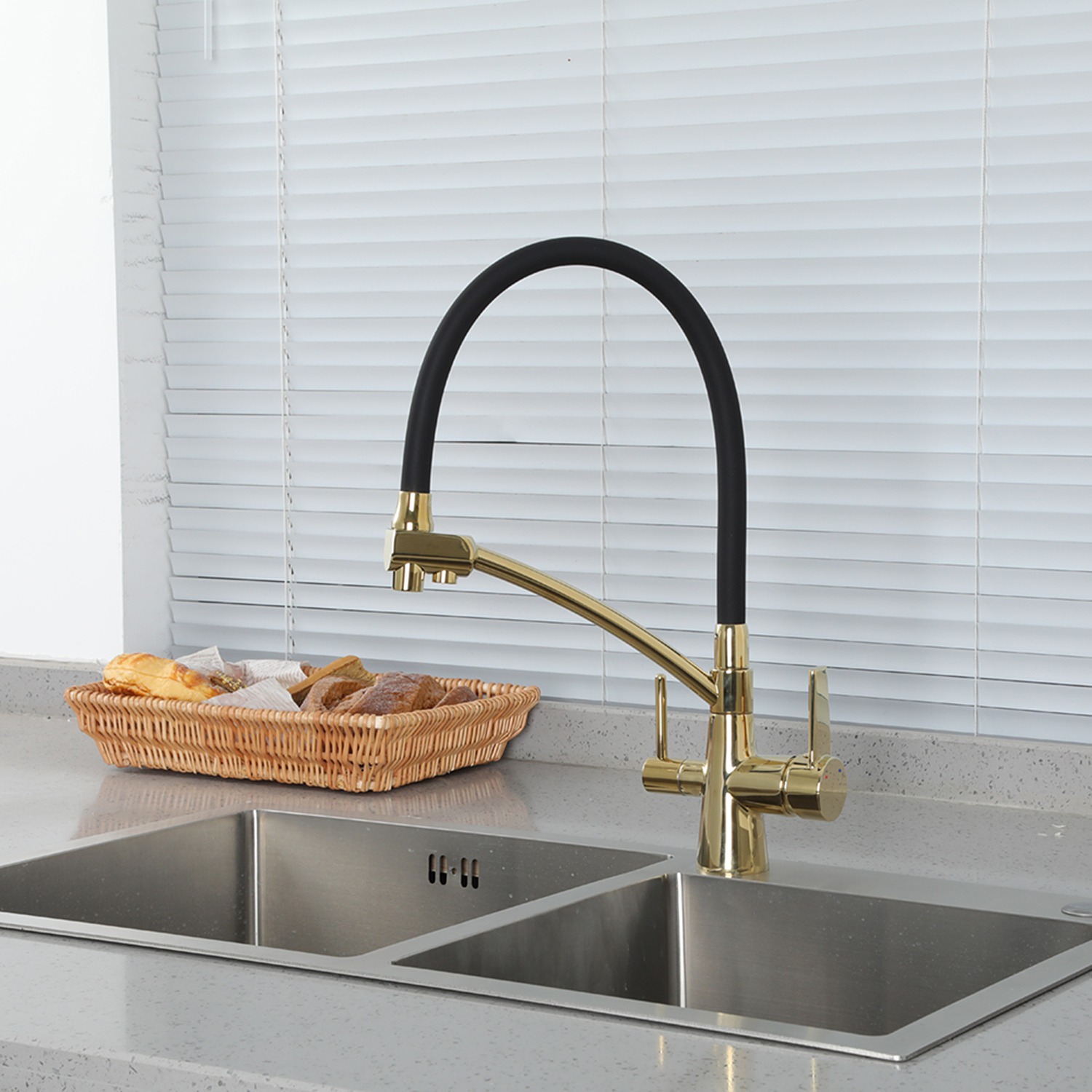 Смеситель для кухни Gappo G4398-13 с гибким изливом и подключением фильтра, материал - латунь, цвет - золото/черный.