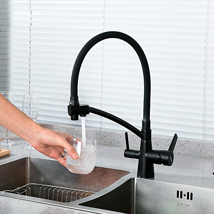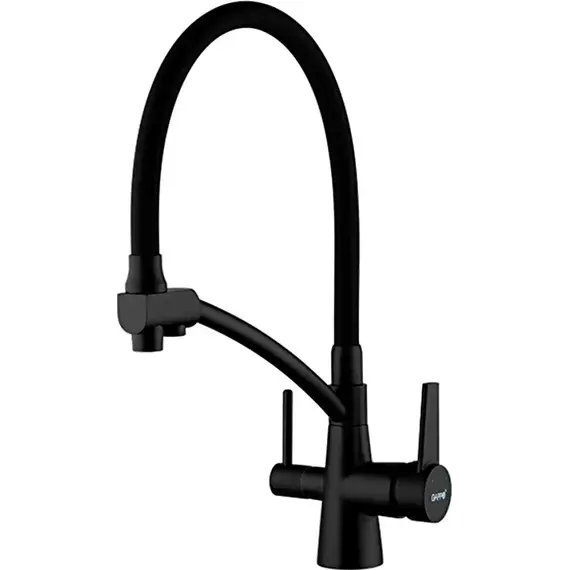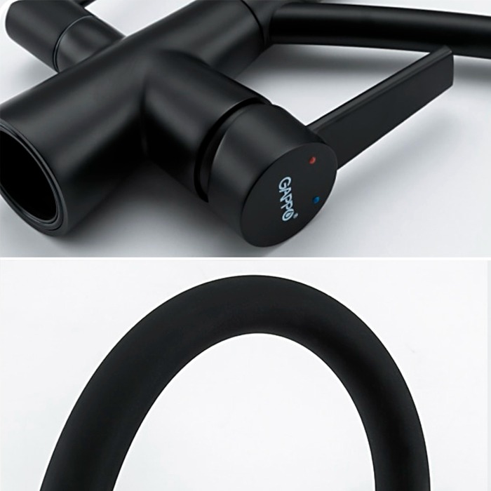 Смеситель для кухни Gappo G4398-16 с гибким, поворотным изливом и подключением фильтра питьевой воды , материал - латунь, цвет - черный.