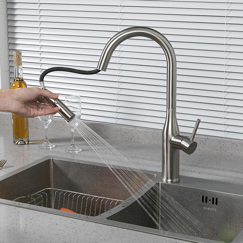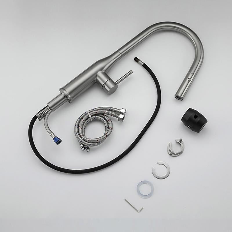 Смеситель для кухни Gappo G4398-45 с вытяжным, поворотным изливом, материал - нержавеющая сталь, цвет - сатин.