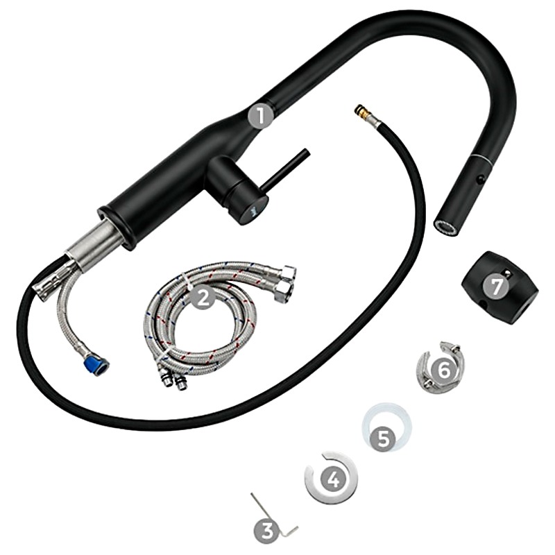 Смеситель для кухни Gappo G4398-46 с вытяжным, поворотным изливом, материал - нержавеющая сталь, цвет - черный.