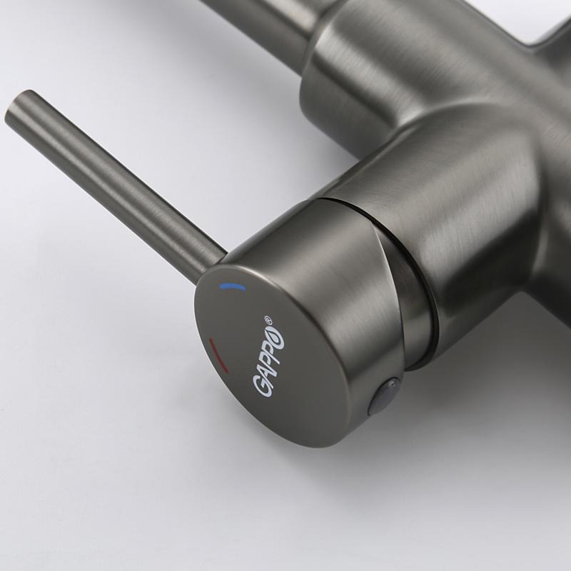 Смеситель для кухни Gappo G4398-69 с гибким изливом и подключением фильтра, материал - латунь, цвет - оружейная сталь.
