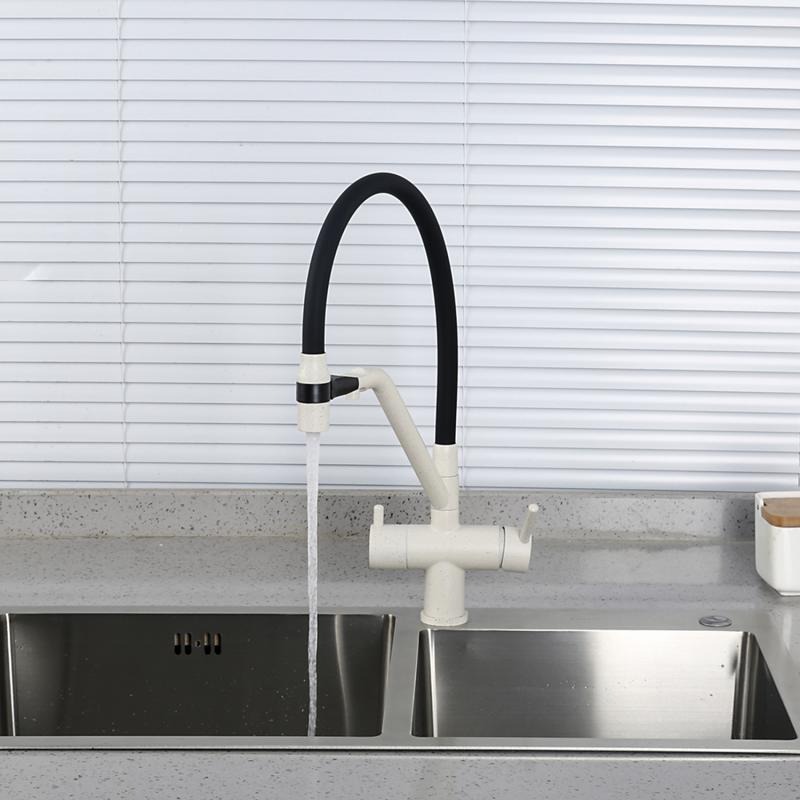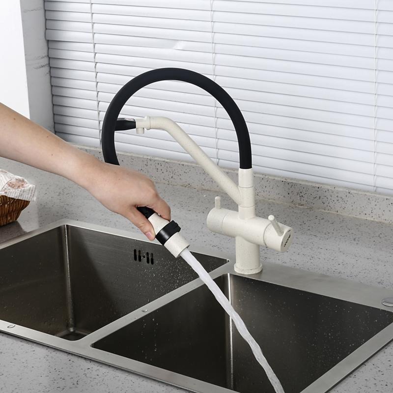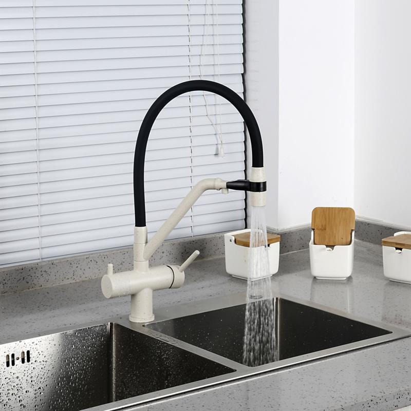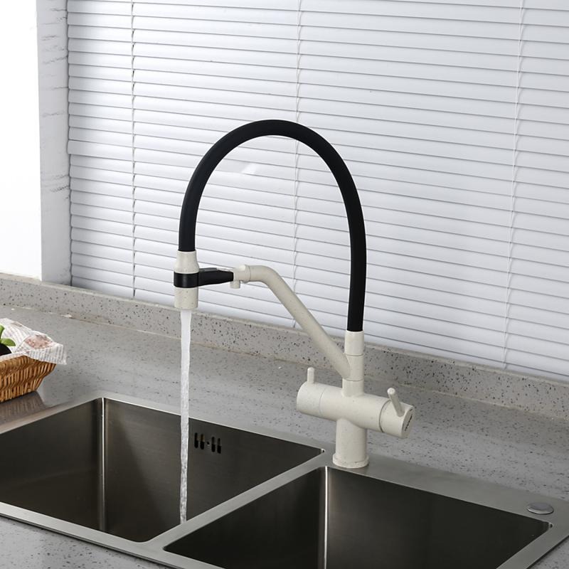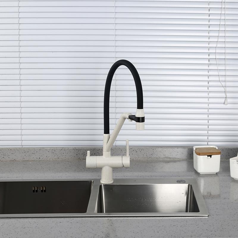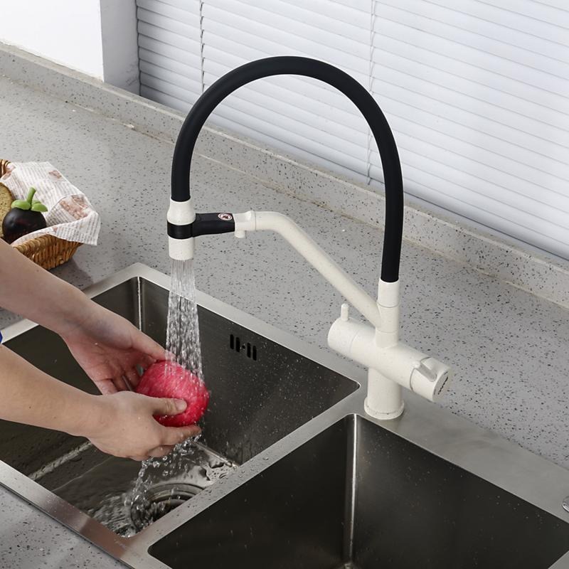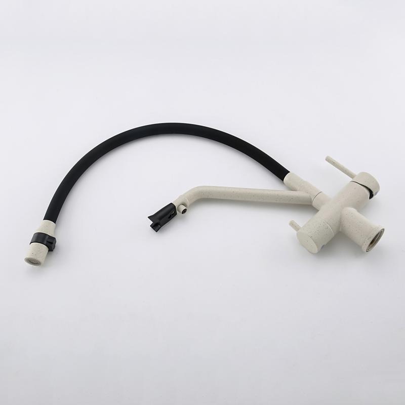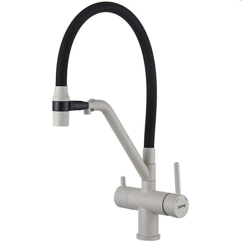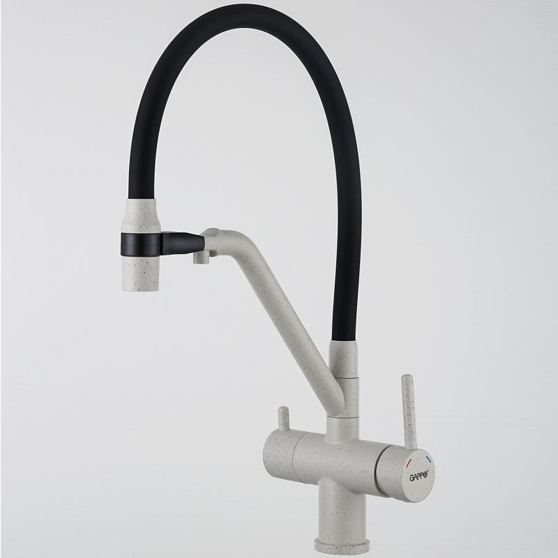 Смеситель для кухни Gappo G4398-81 с гибким изливом и подключением фильтра, материал - латунь, цвет - белый/черный.