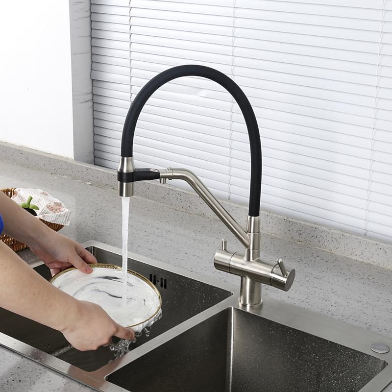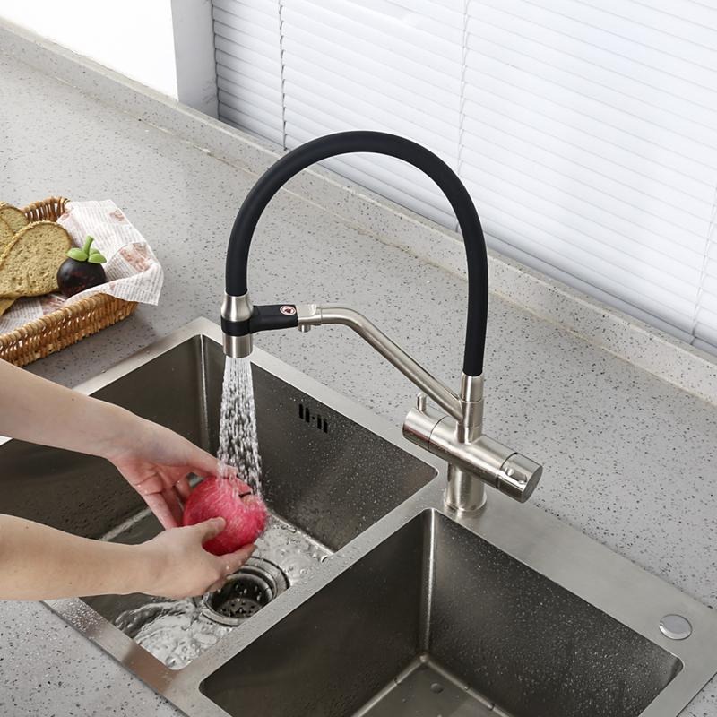 Смеситель для кухни Gappo G4398-85 с гибким изливом и подключением фильтра, материал - латунь, цвет - сатин/черный.