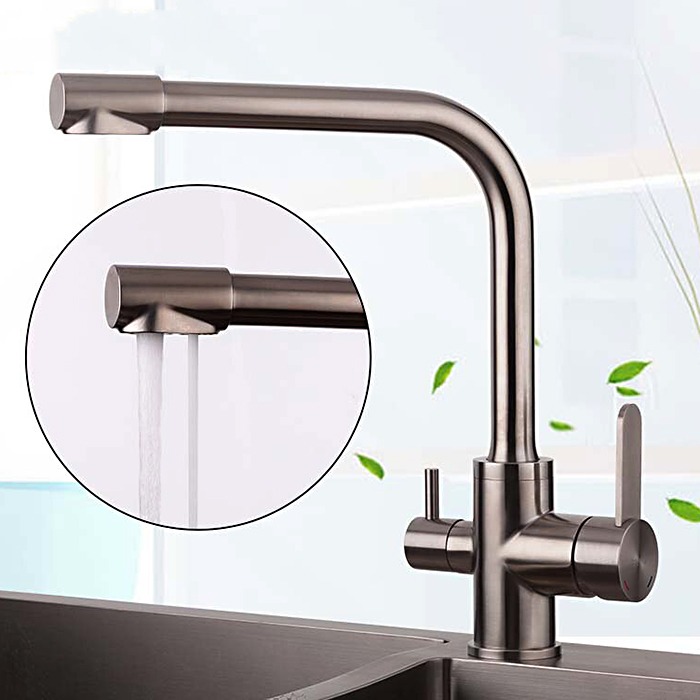 Смеситель для кухни Gappo G4399-1 с подключением фильтра питьевой воды, материал - нержавеющая сталь, цвет - сатин.