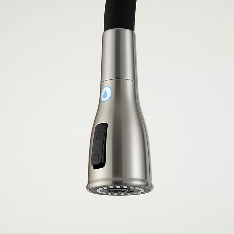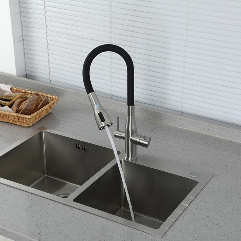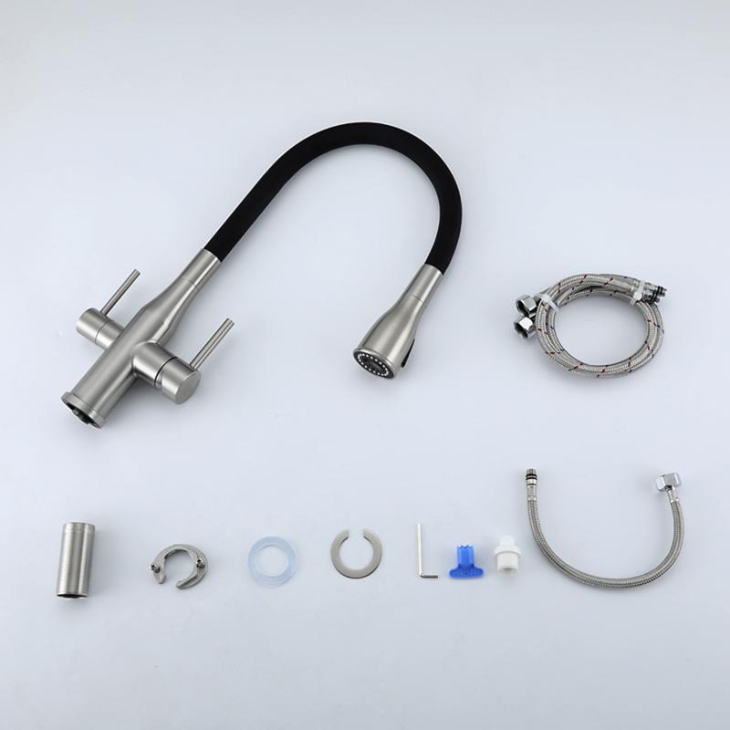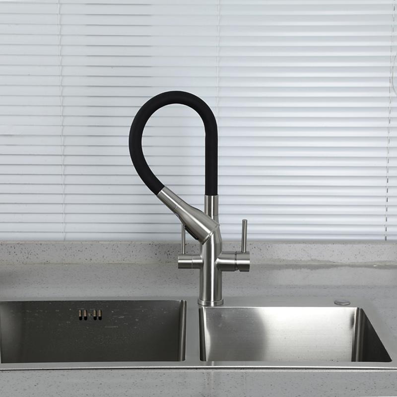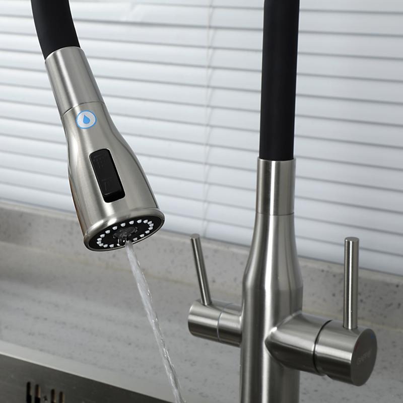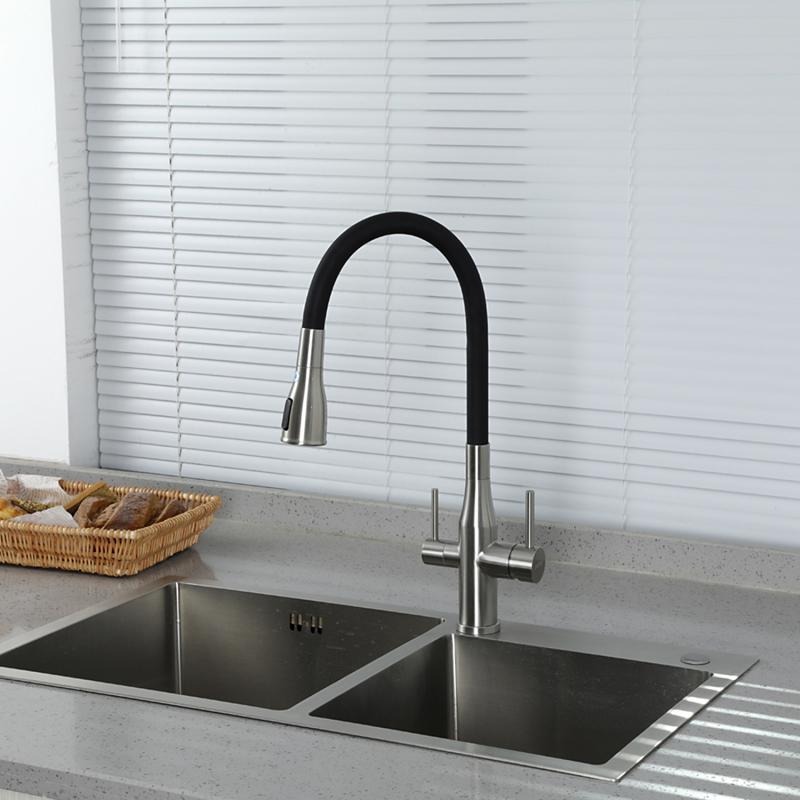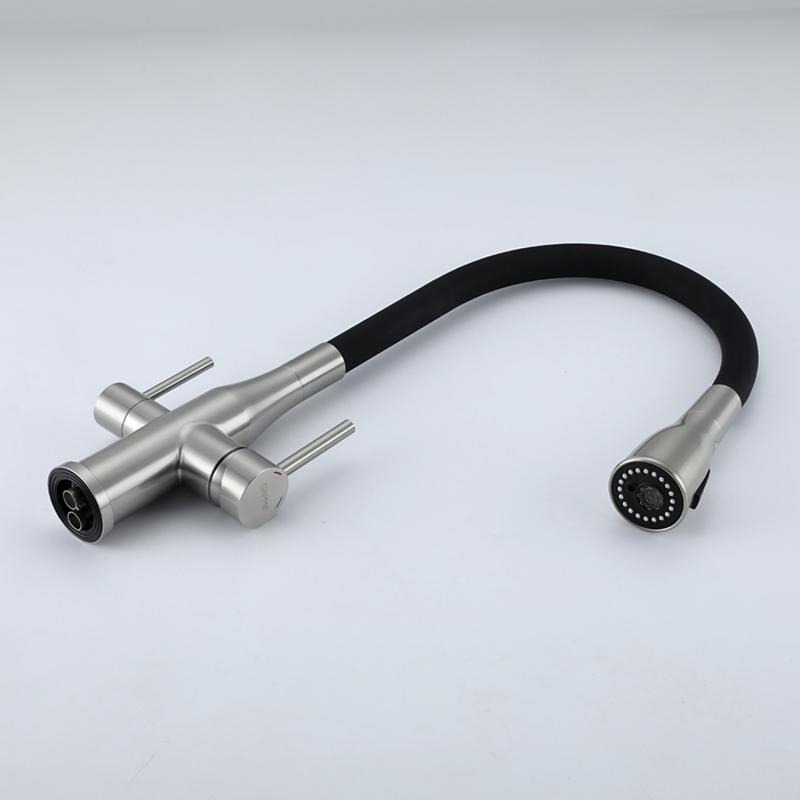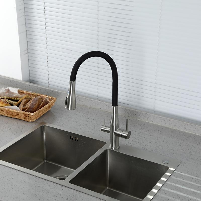 Смеситель для кухни Gappo G4399-65 с гибким изливом и подключением фильтра, материал - латунь, цвет - сатин/черный.
