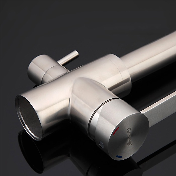 Смеситель для кухни Gappo G4399 с поворотным изливом и подключением фильтра питьевой воды , материал - нержавеющая сталь, цвет - сатин.
