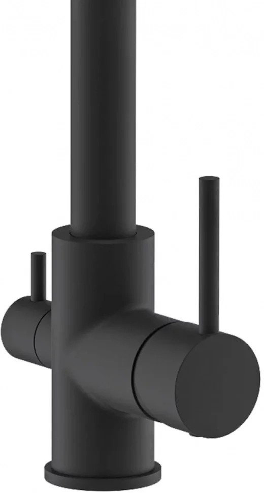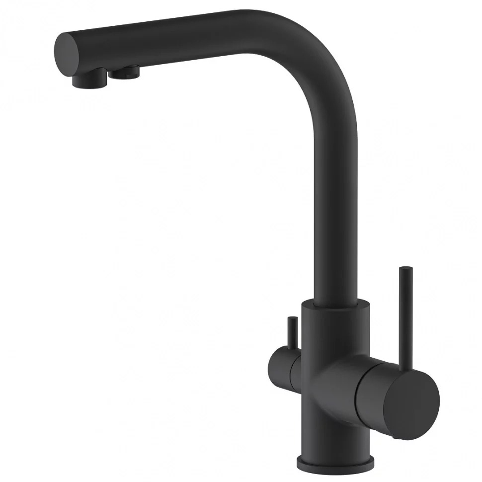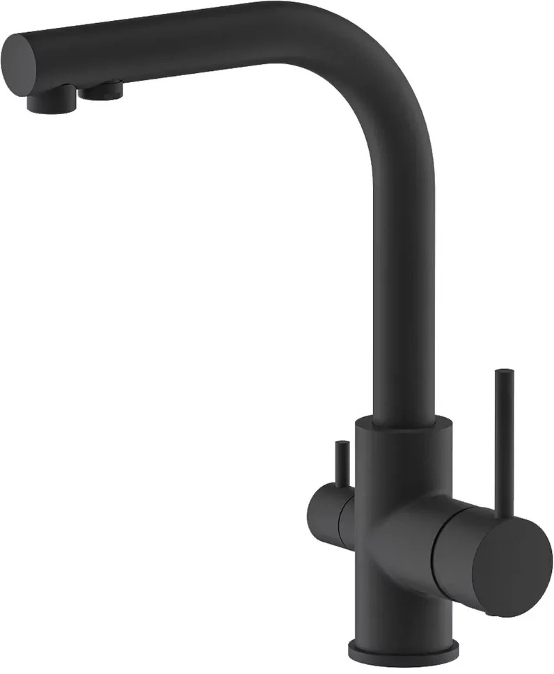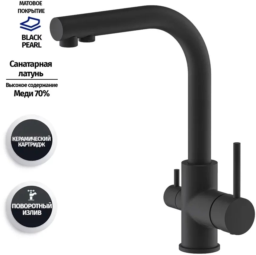 Смеситель для кухни Grocenberg GB40551BL с подключением фильтра и поворотным изливом, материал - латунь, цвет - чёрный матовый.