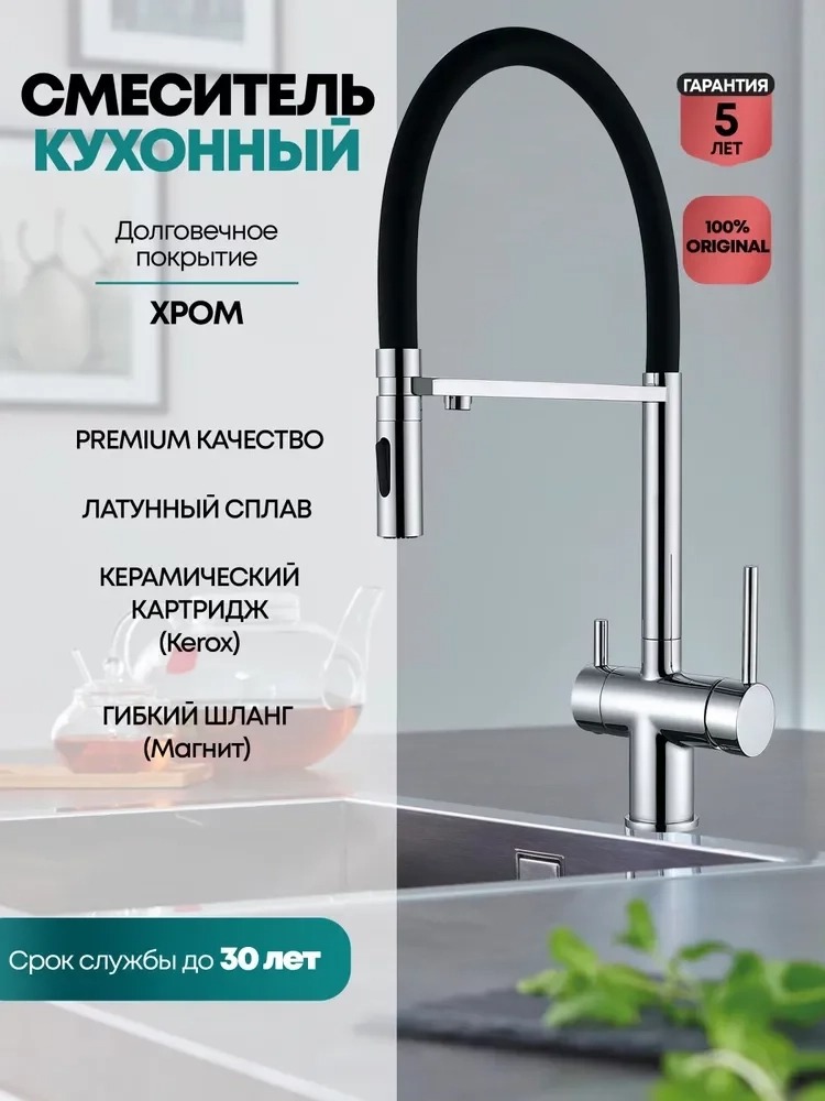 Описание смеситель для кухни с подключением фильтра,смеситель для кухни с гибким изливом Grocenberg GB4096CR