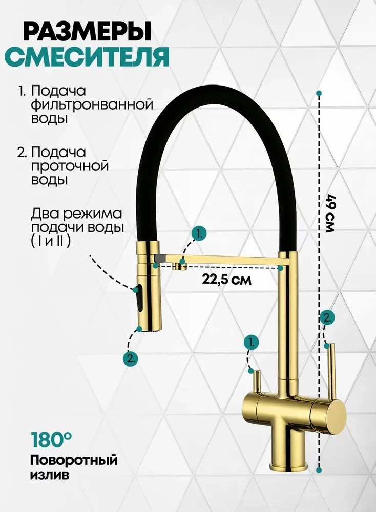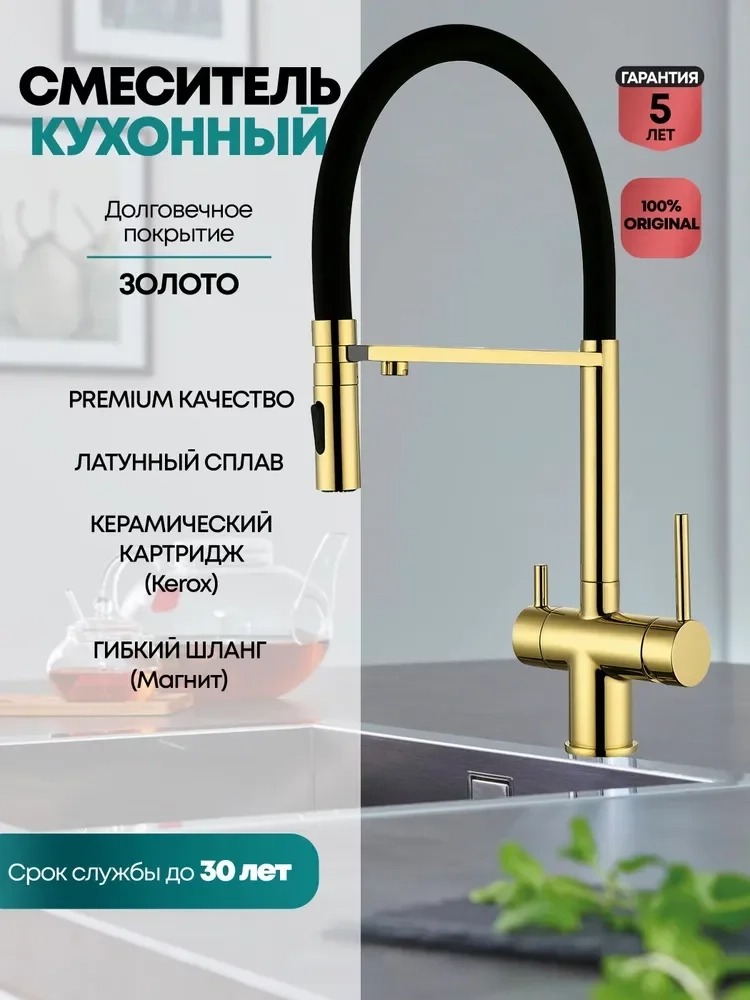 Описание смеситель для кухни с подключением фильтра,смеситель для кухни с гибким изливом Grocenberg GB4096GO
