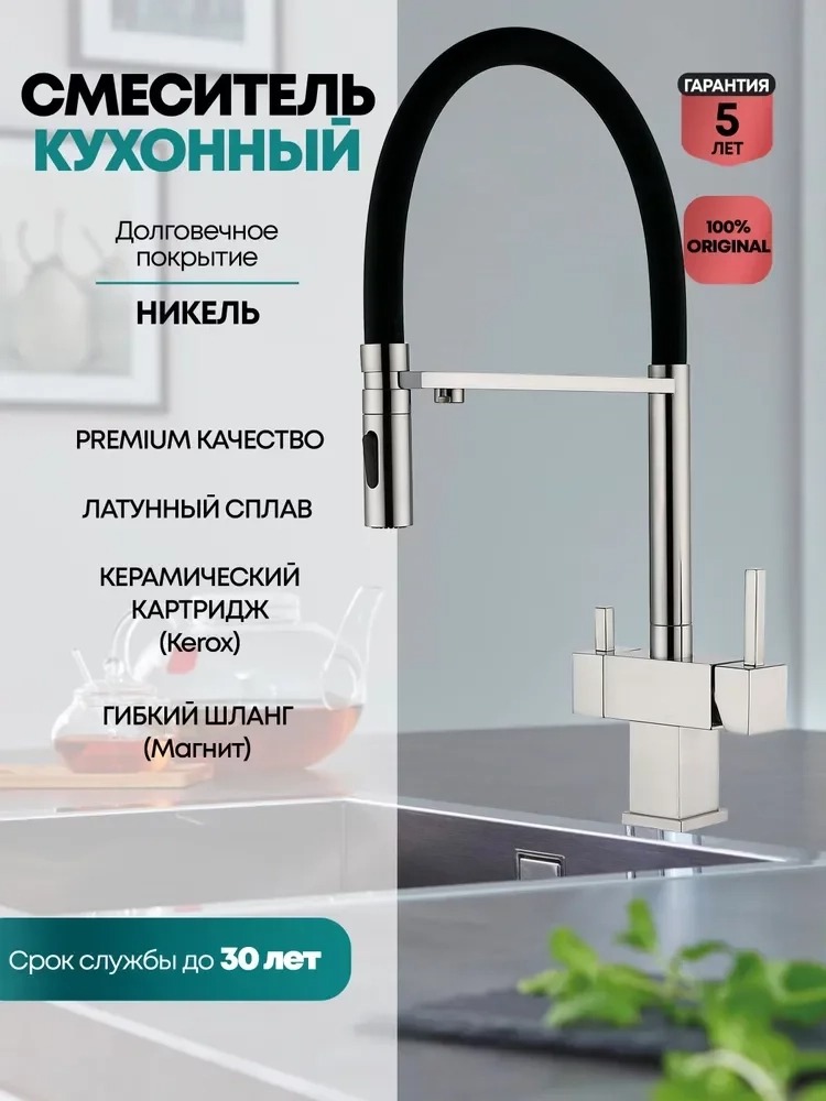 Описание смеситель для кухни с подключением фильтра,смеситель для кухни с гибким изливом Grocenberg GB4098NK