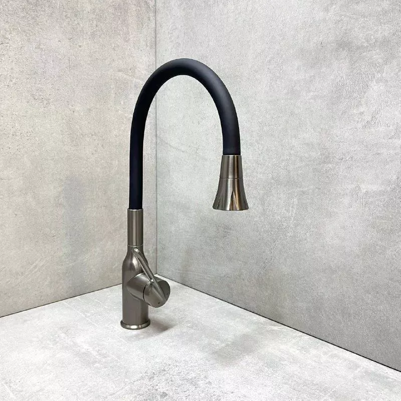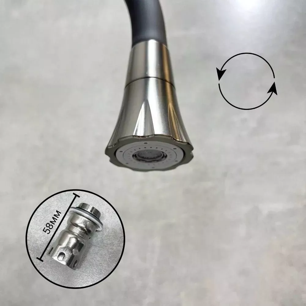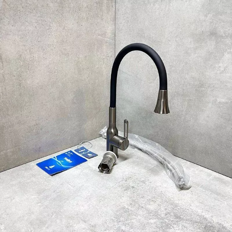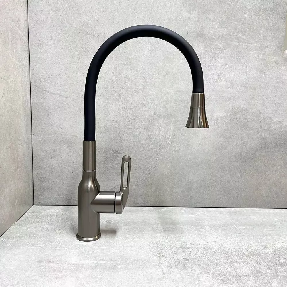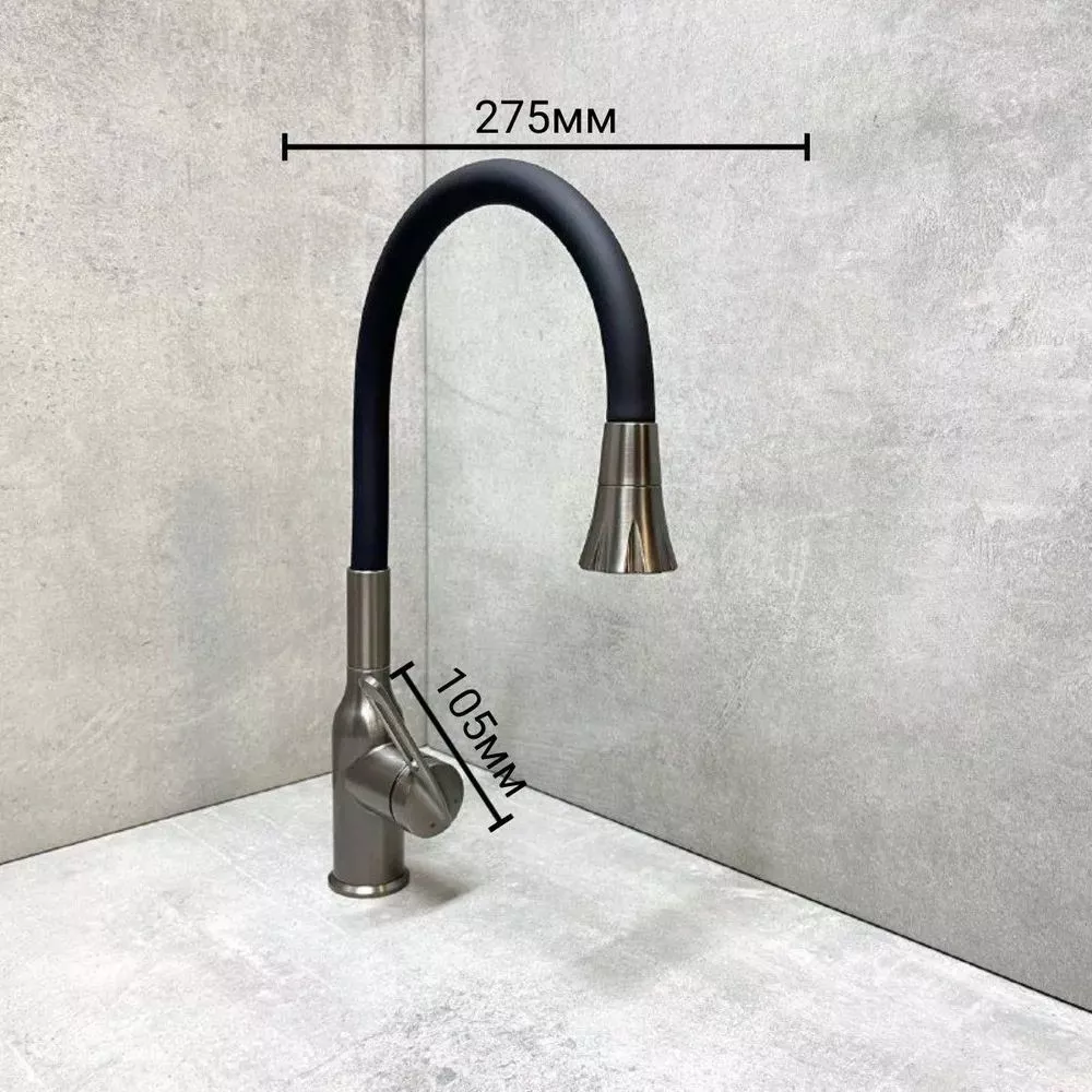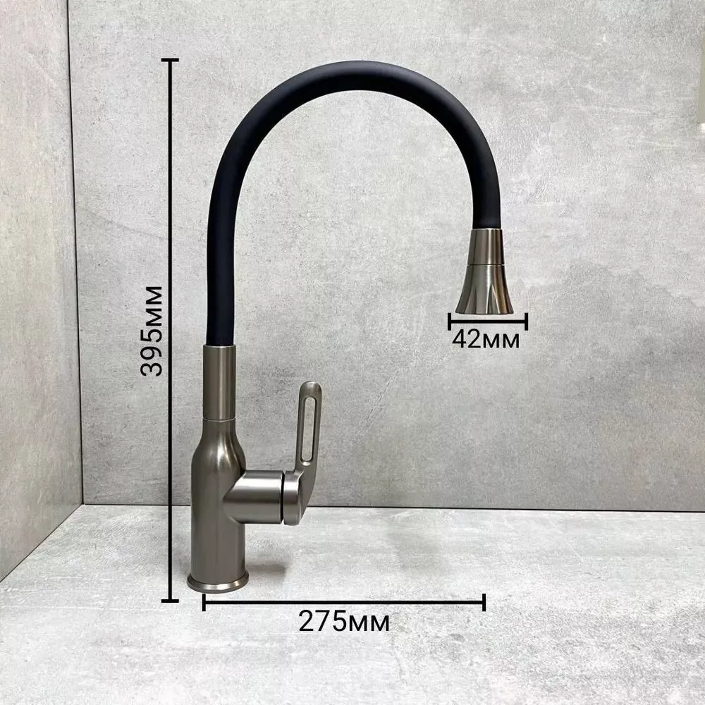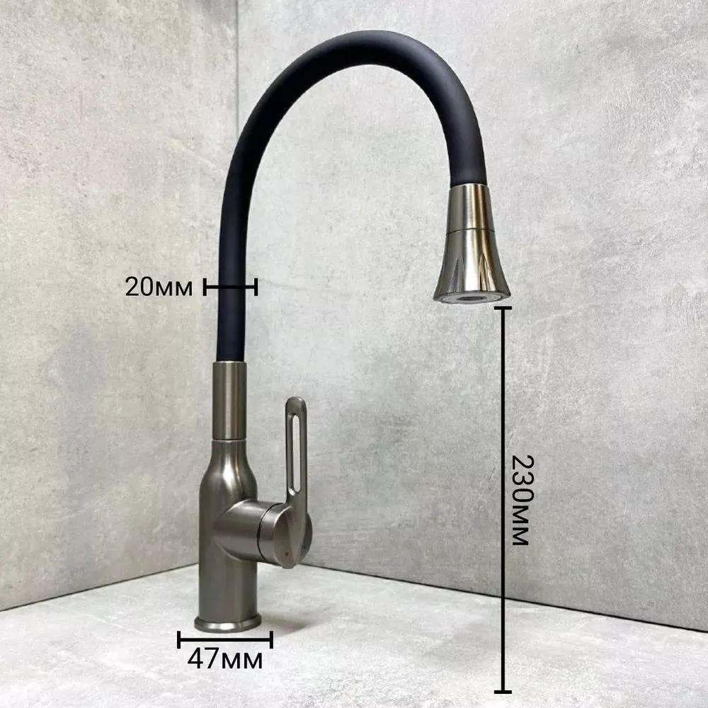 Смеситель для кухни Haiba HB73825-3 с гибким изливом и поворотным изливом, материал латунь/силикон, цвет графитовый.