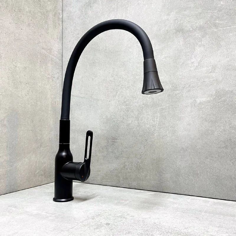 Смеситель для кухни Haiba HB73825-7 с гибким изливом и поворотным изливом, материал латунь/силикон, цвет черный матовый.