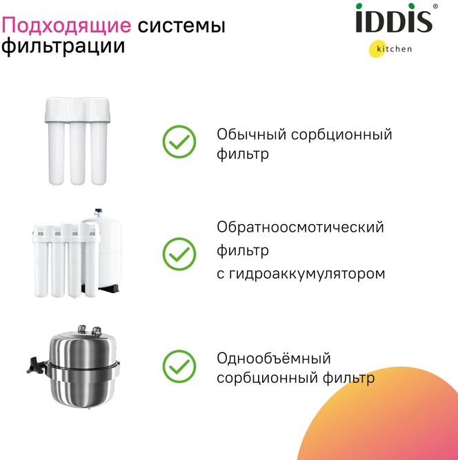 Описание смеситель для куxни, смеситель для кухни с подключением фильтра, смеситель для кухни с выдвижным изливом Iddis PURSBPFi05N