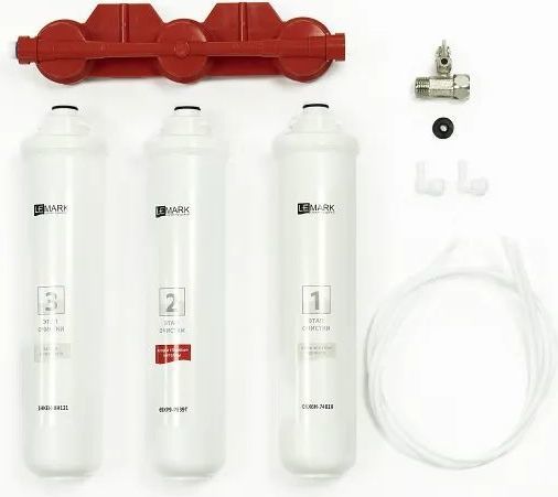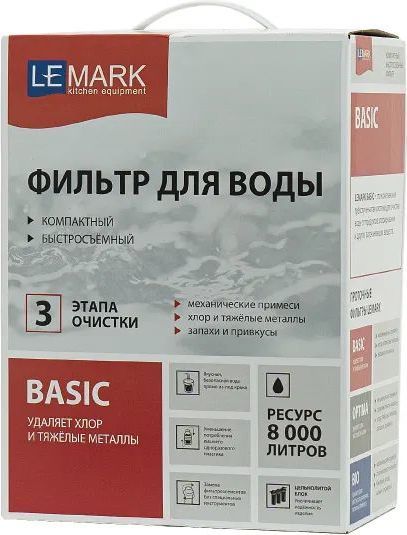 - Водоочиститель в комплекте BASIC - это трёхступенчатая система для доочистки городской воды от продуктов хлорирования, тяжелых металлов и механических частиц.