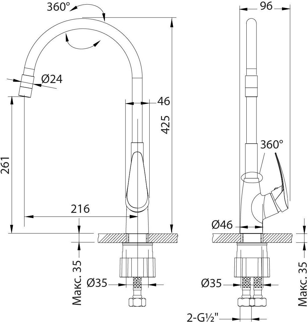 Описание смеситель для кухни с гибким изливом Lemark LM0415C-White