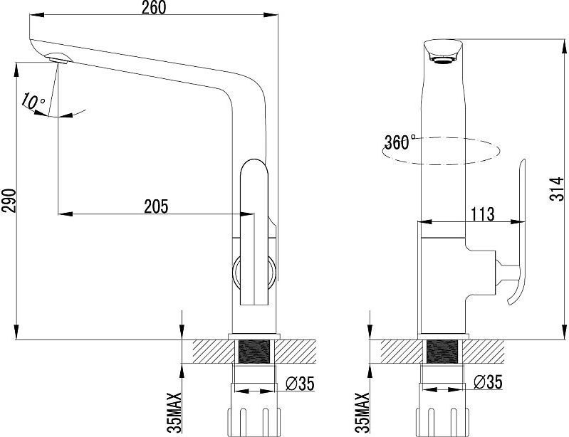 - Скрытый аэратор Neoperl®Slim SSR с изменяемым углом подачи воды