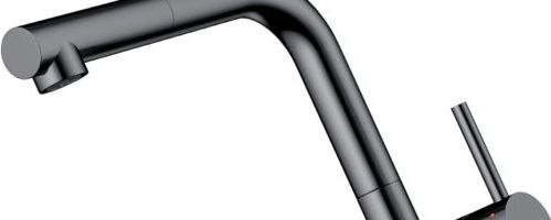 Смеситель для кухни Omoikiri Takamatsu-S GM с подключением фильтра и выдвижным изливом, высота излива 295 мм, материал латунь, цвет вороненая сталь.