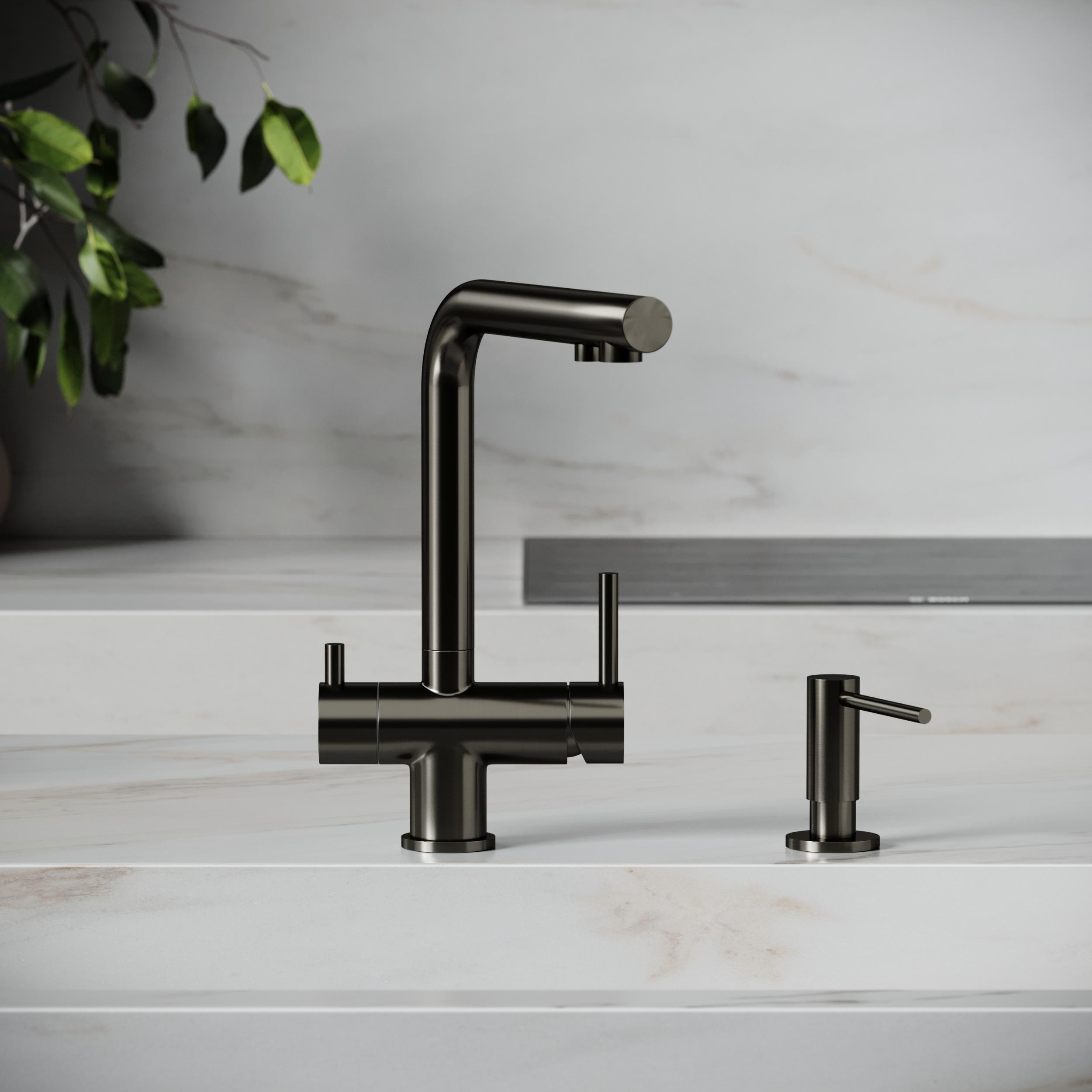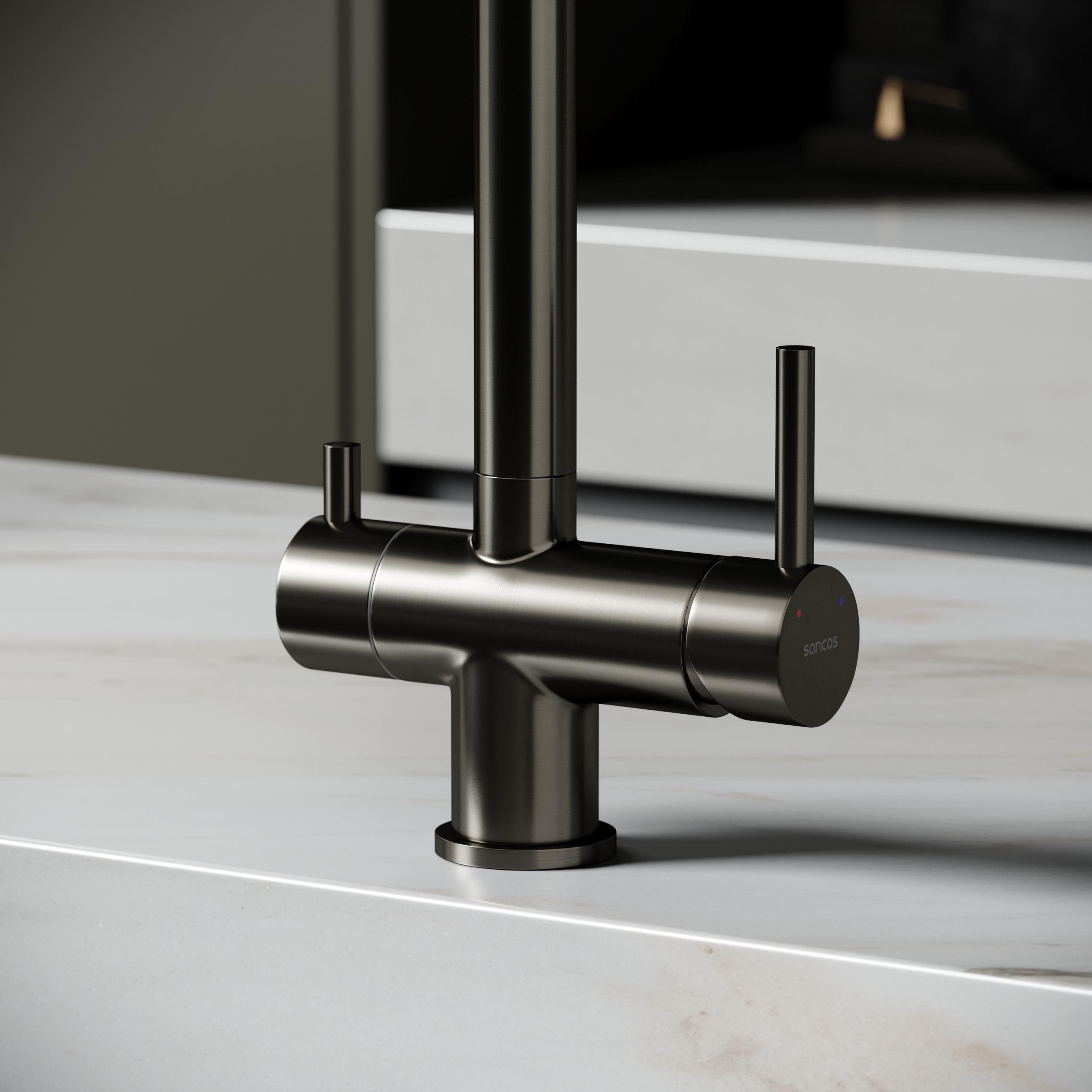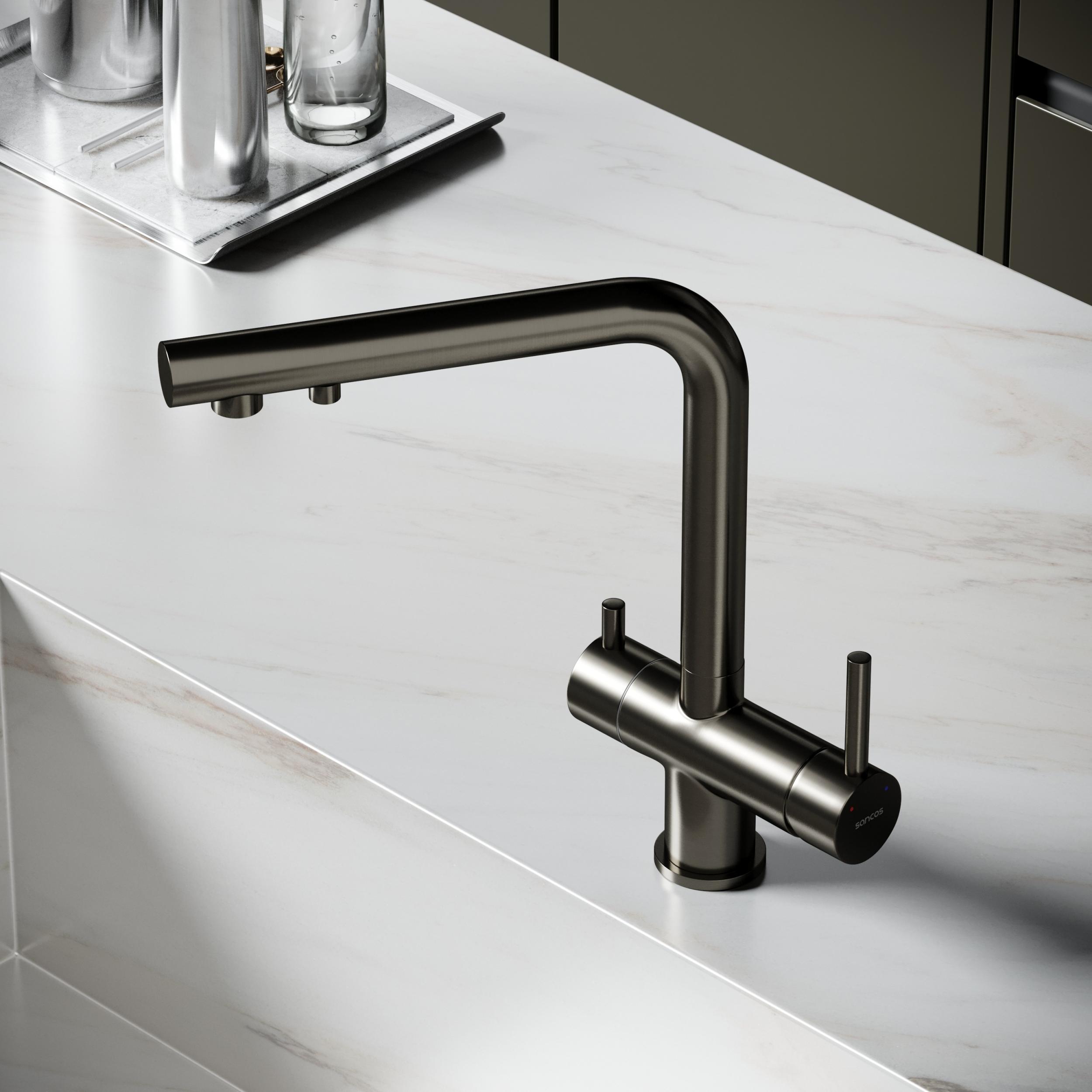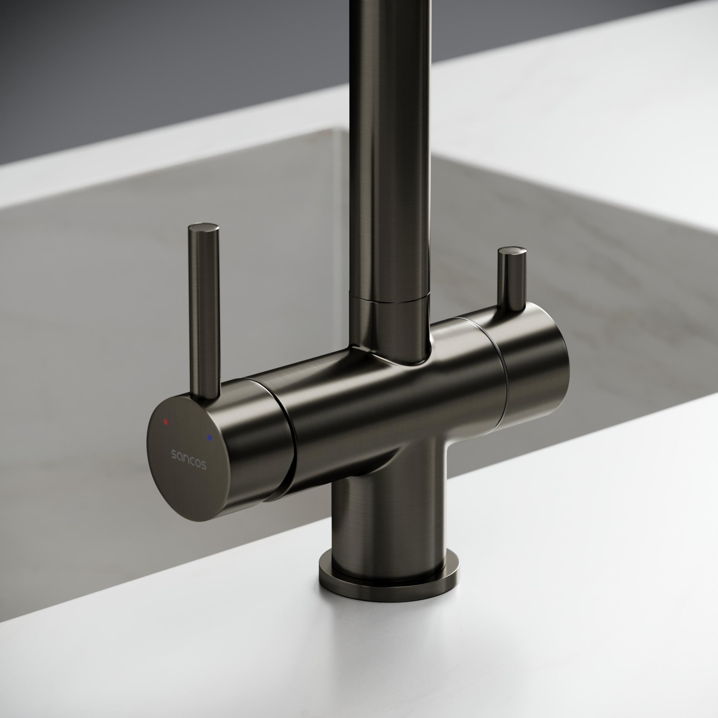 Смеситель для кухни Sancos Foster SC4014GG с поворотным изливом и подключением фильтра питьевой воды, материал - латунь, цвет - вороненая сталь.