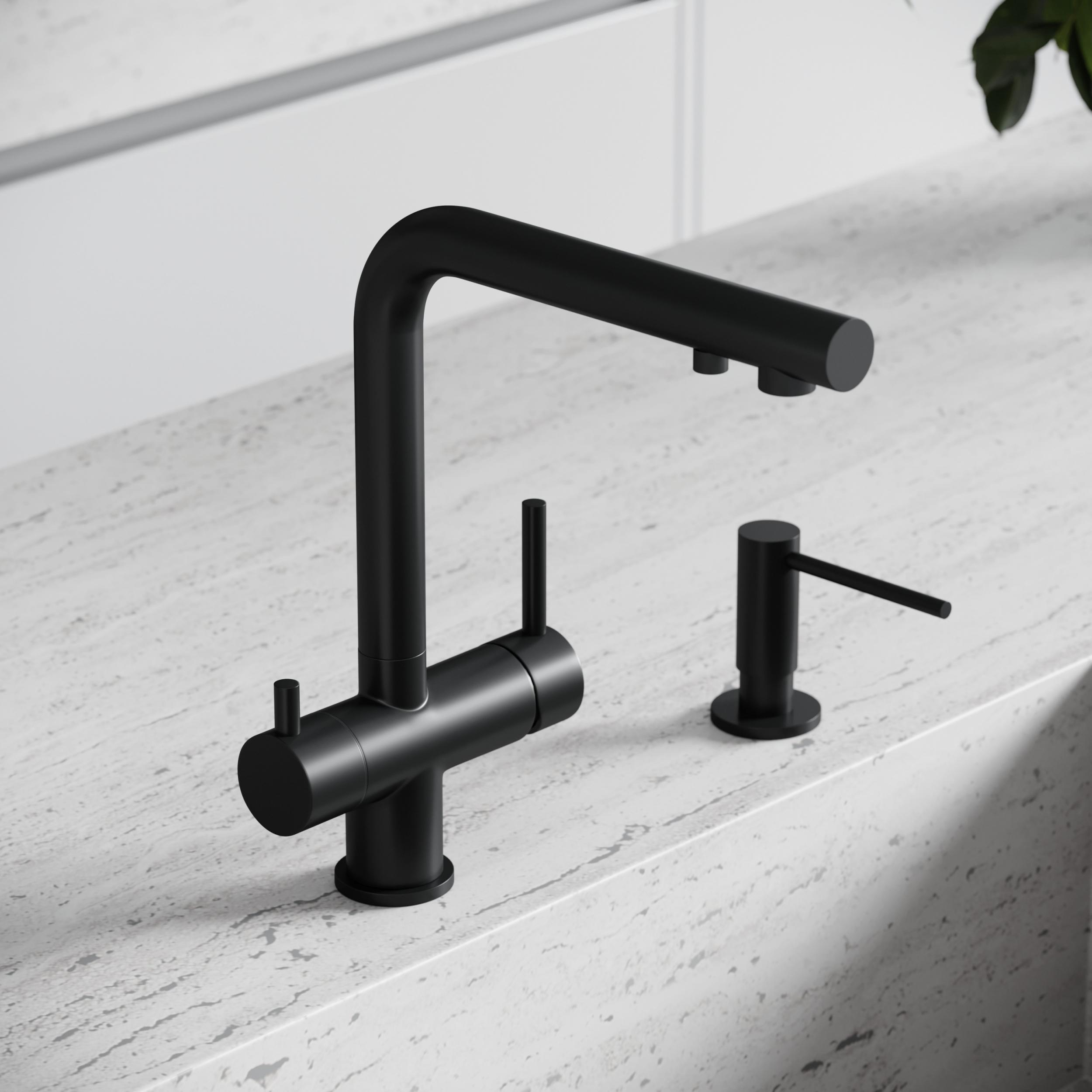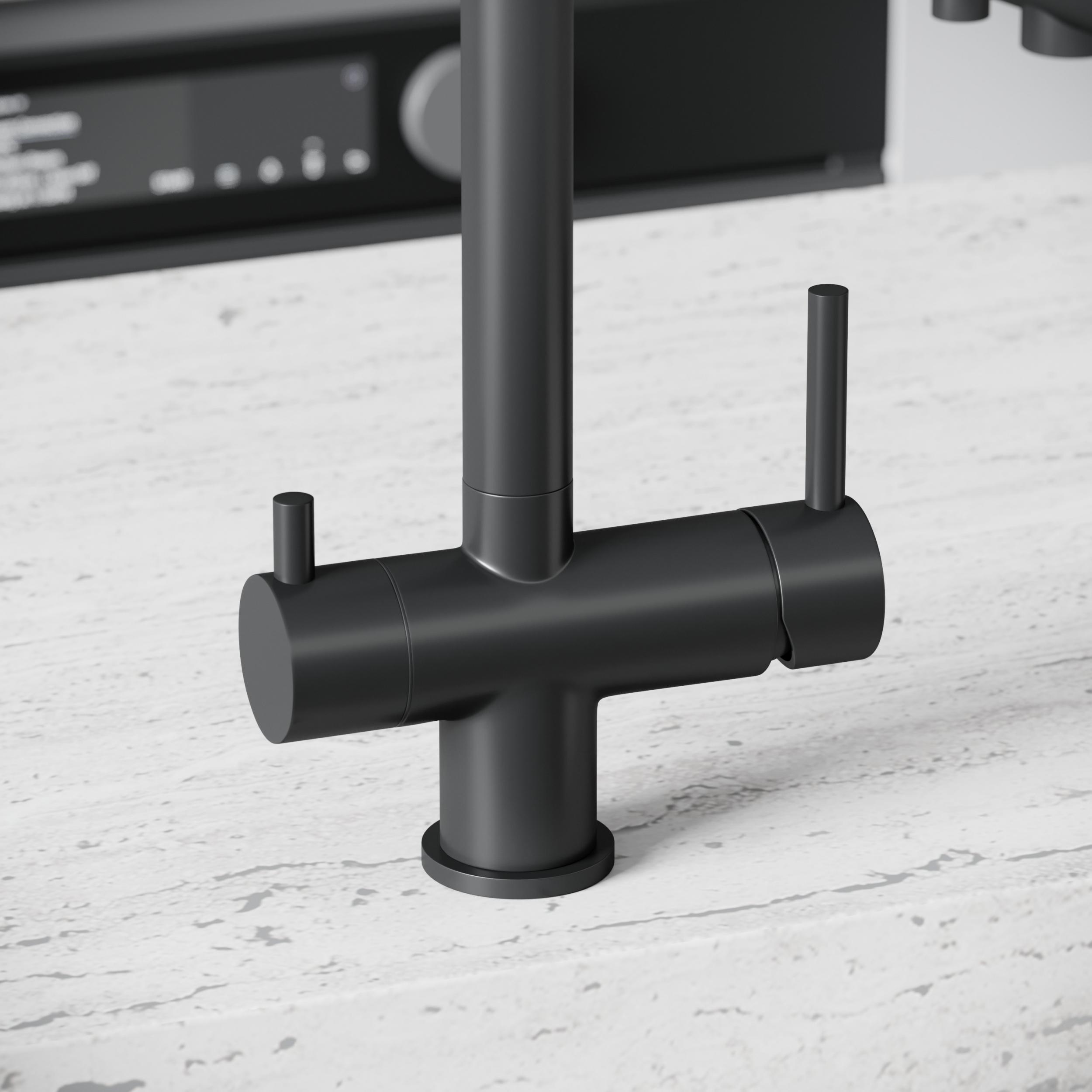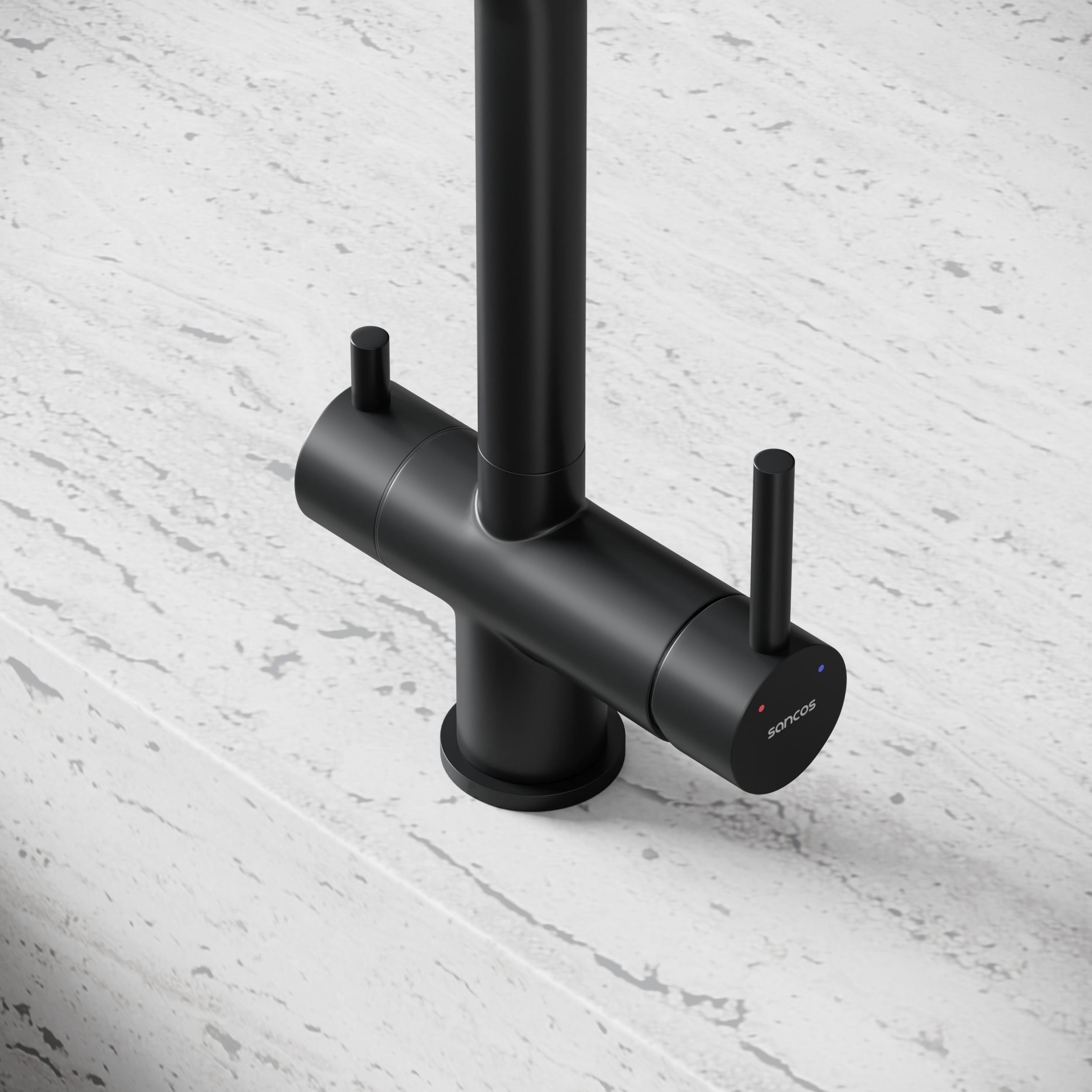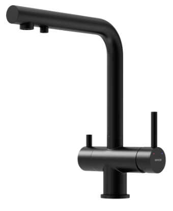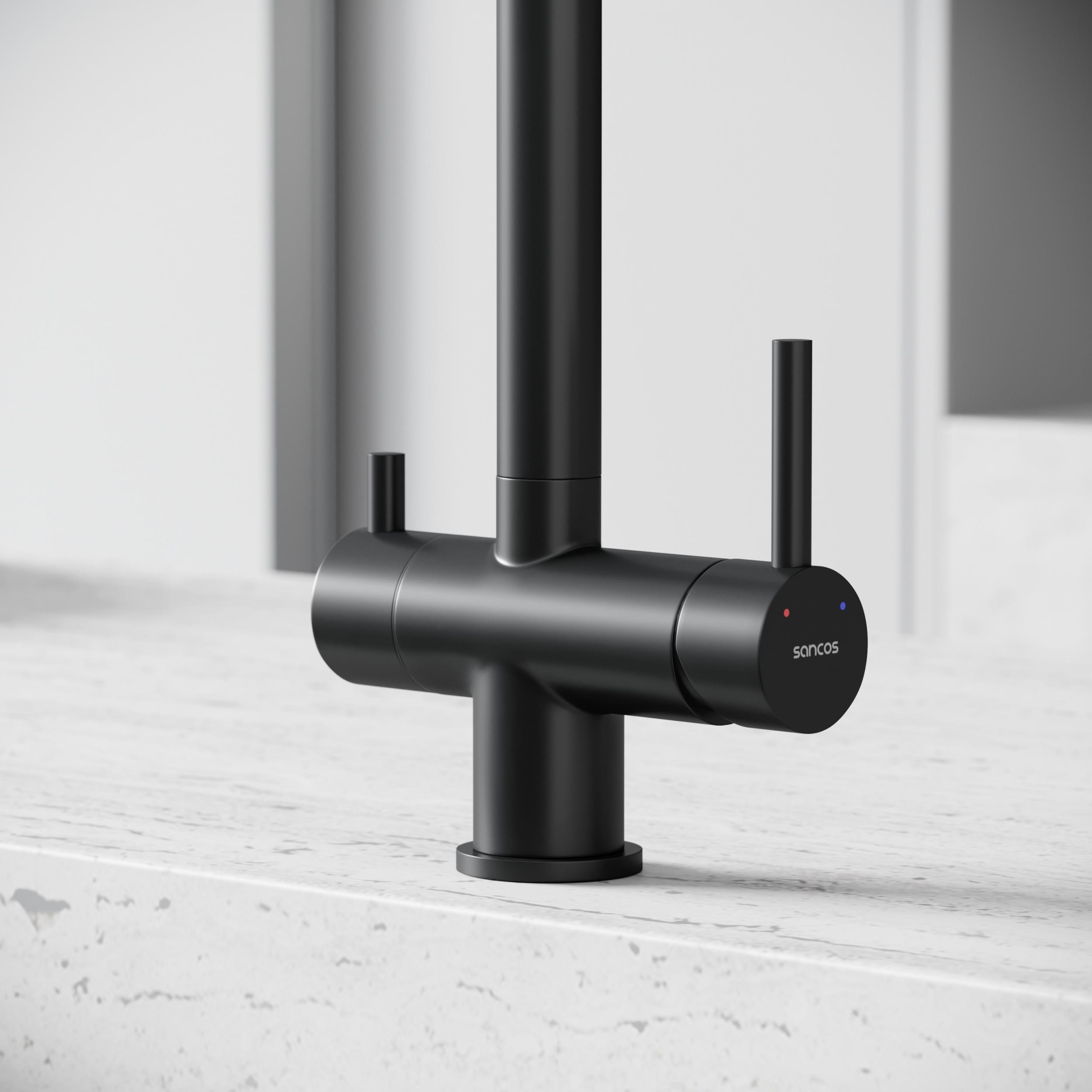 Смеситель для кухни Sancos Foster SC4014MB с поворотным изливом и подключением фильтра питьевой воды, материал - латунь, цвет - чёрный матовый.
