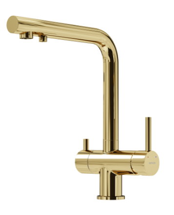 Смеситель для кухни Sancos Foster SC4014ZG с поворотным изливом и подключением фильтра питьевой воды, материал - латунь, цвет - полированное золото.