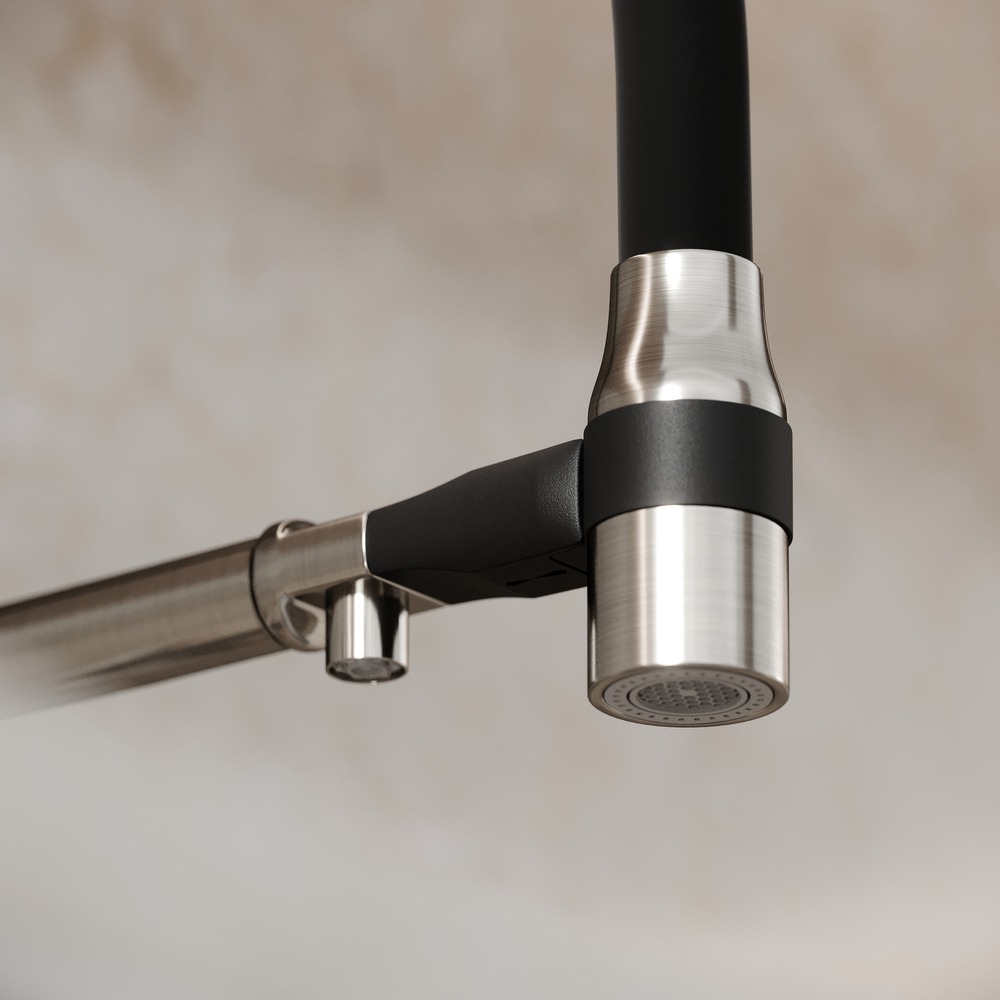 Смеситель для кухни Sancos Garda SC4009BN с гибким, поворотным изливом и подключением фильтра питьевой воды, материал - латунь, цвет - брашированный никель/чёрный.