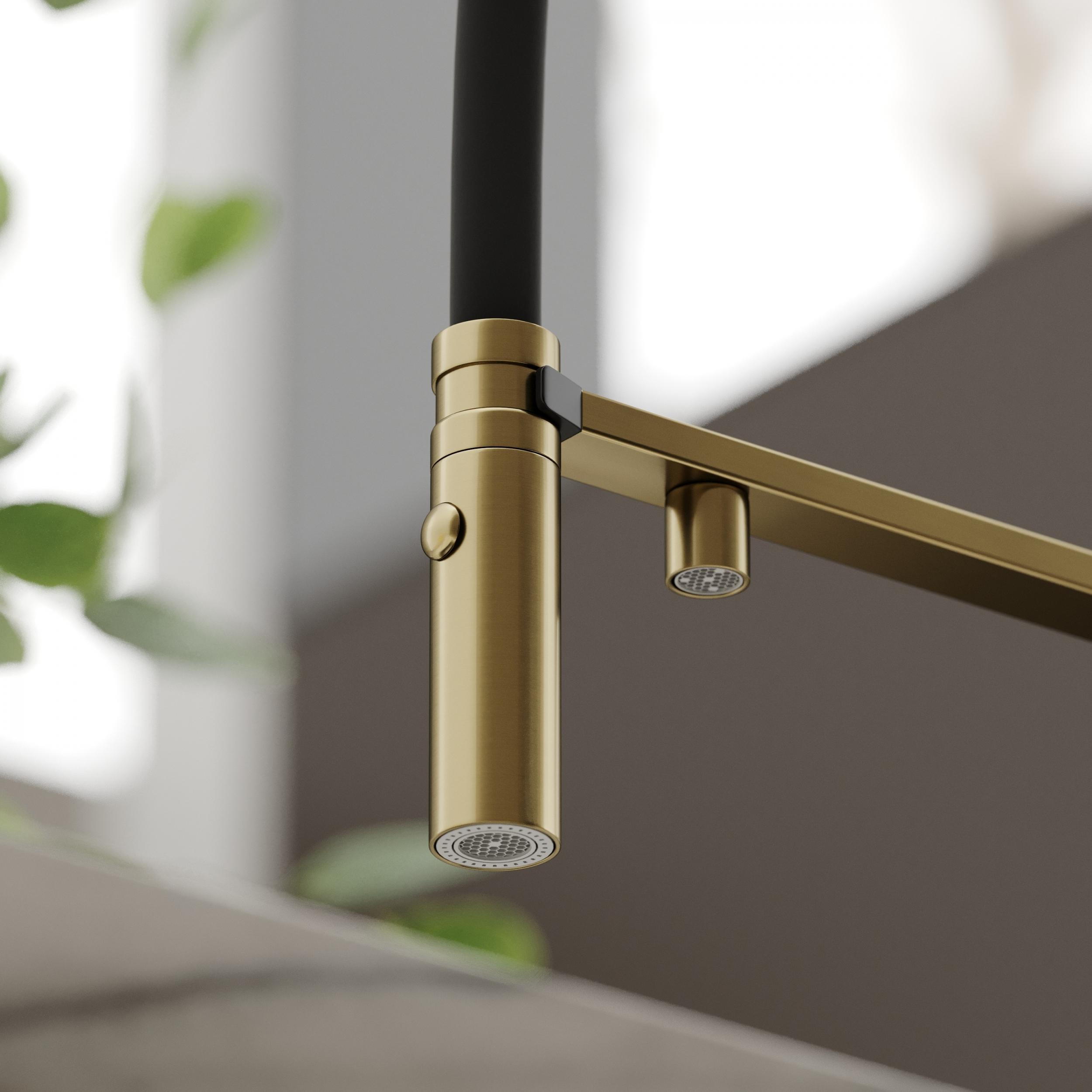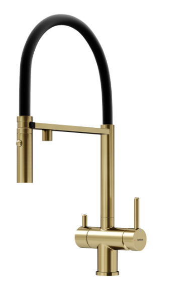 Смеситель для кухни Sancos Imola SC4010BGbh с гибким, поворотным изливом и подключением фильтра питьевой воды, материал - латунь, цвет - брашированное золото.
