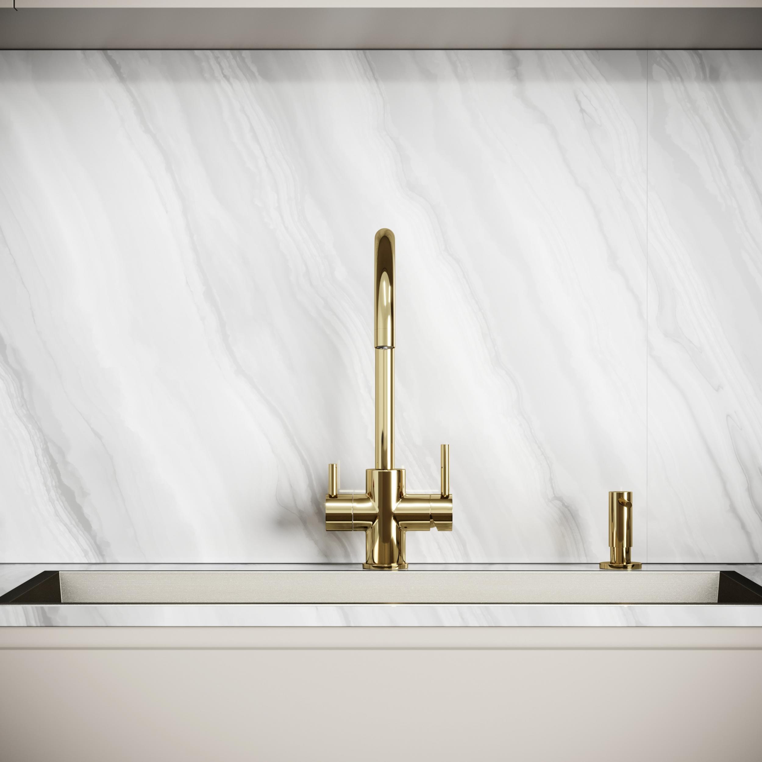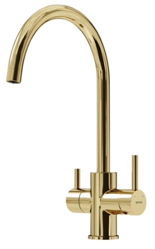 Смеситель для кухни Sancos Taper SC4012ZG с поворотным изливом и подключением фильтра питьевой воды, материал - латунь, цвет - полированное золото.
