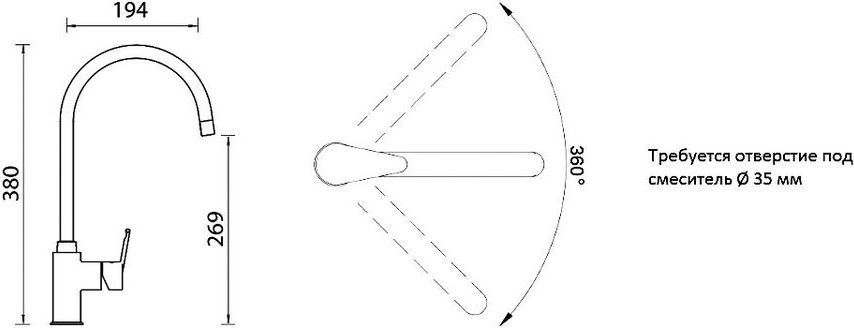 Смеситель для кухни Schock SIMI, высота излива 269 мм, материал - латунь, цвет - оникс.