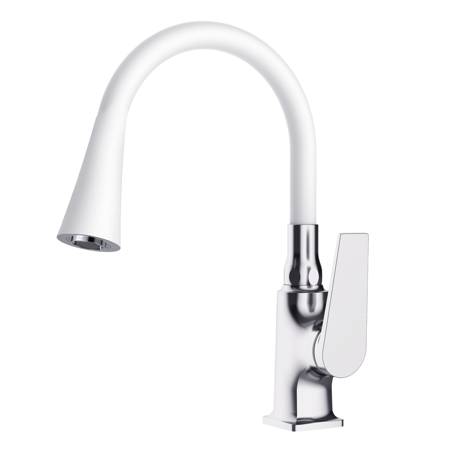 Белый и хромированный блеск придаёт смесителю стильный вид, который будет отлично смотреться в любой кухне. Белый-хром — это не только тренд, но и практичный выбор, так как он скрывает возможные пятна и налет. Легкость ухода за этим смесителем позволит вам всегда поддерживать его в идеальном состоянии.