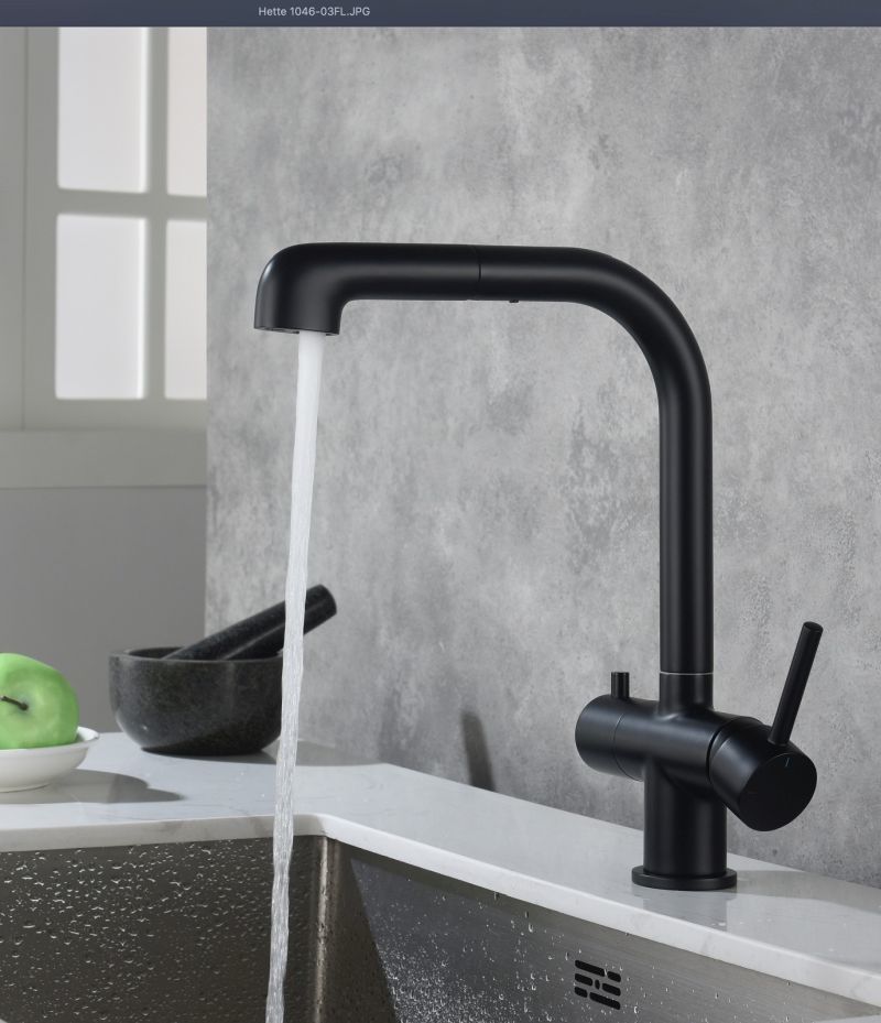 - Смеситель с подключением фильтра для питьевой воды и вытяжной лейкой