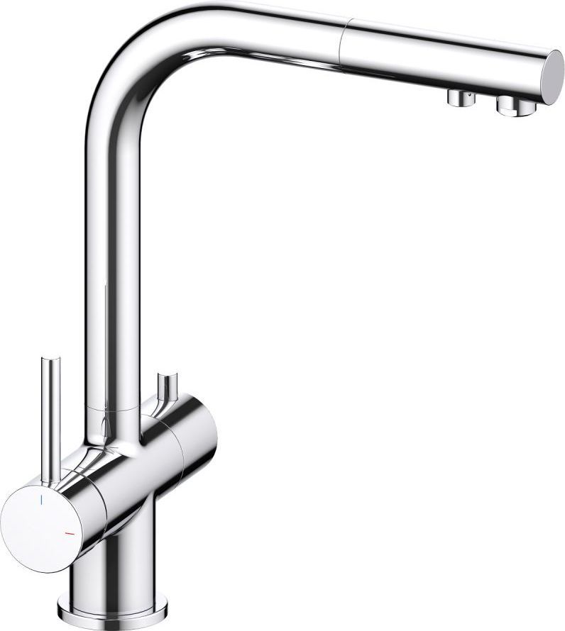 - Смеситель с подключением фильтра для питьевой воды и вытяжной лейкой