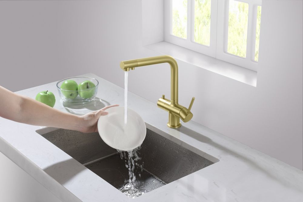 Смеситель для кухни Timo Saona 2396/17F с подключением питьевой воды, материал - латунь, цвет - золото матовое.