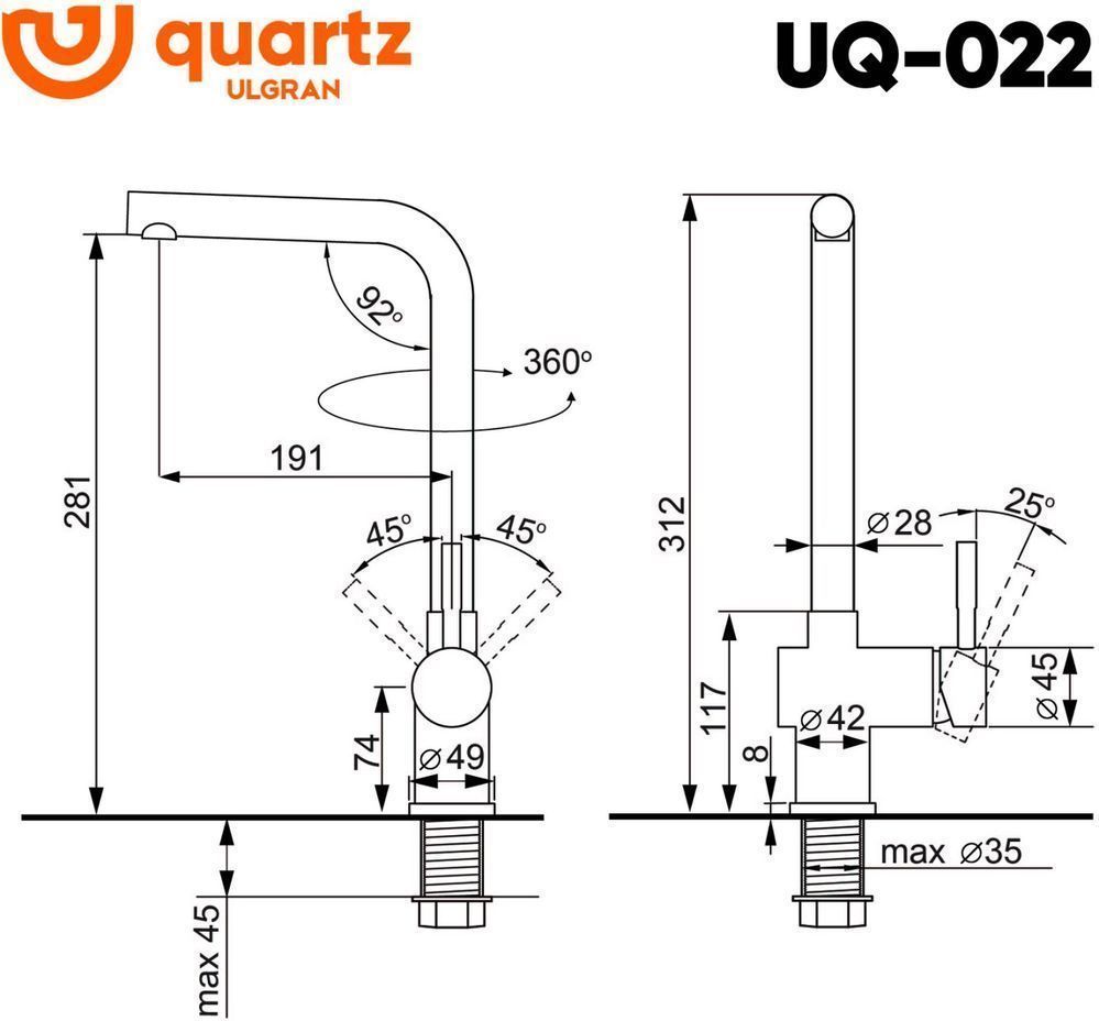 Характеристики смеситель для кухни Ulgran (UQ-022-03)