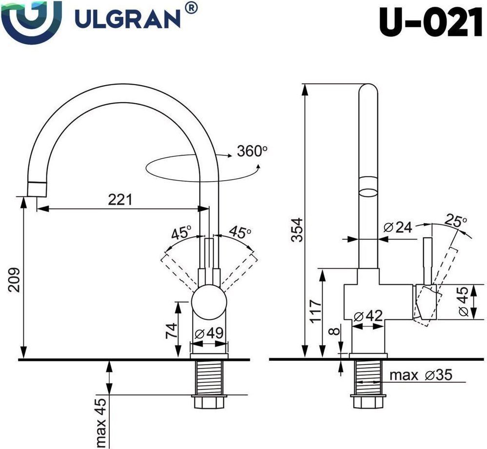 Характеристики смеситель для кухни Ulgran (U-021-309)