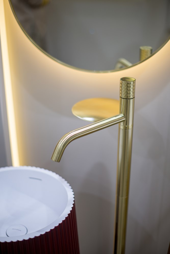 Смеситель для раковины Boheme Stick 120-MG, материал латунь, цвет золото матовое.