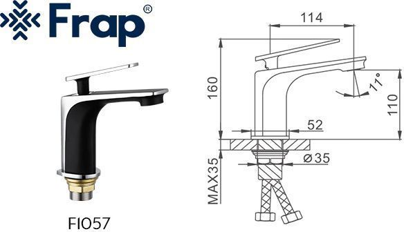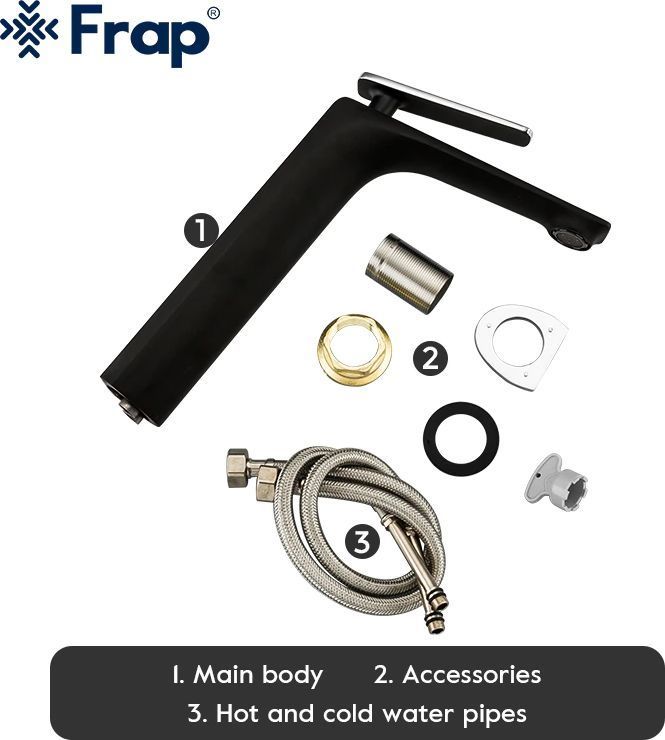Смеситель для раковины Frap F1057, материал - латунь, цвет - черный/хром.
