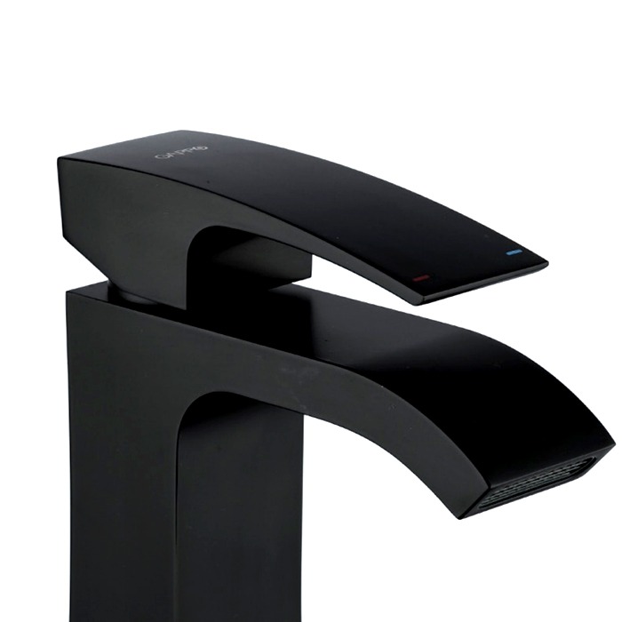 Смеситель для умывальника Gappo G1007-6 с широким и узким аэратором. Обеспечивает мощный напор воды, при этом сокращает расход. Посадка у него низкая. Подойдет, как к глубокой, так и не глубокой чаши. Сделан из латуни и окрашен в черный цвет. Краска не будет облазить, а металл ржаветь.