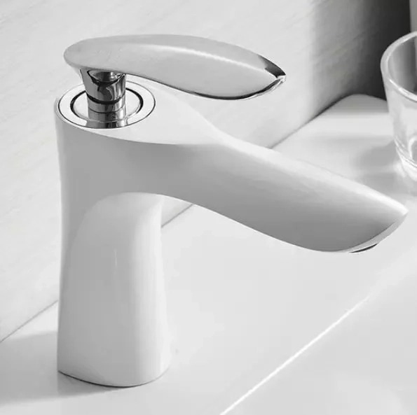 Смеситель для раковины Grocenberg GB2001WC, материал - латунь, цвет - белый хром.