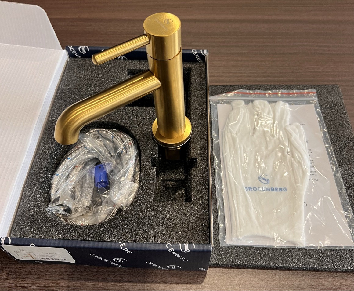 Смеситель для раковины Grocenberg GB2099GL, золотой брашированный