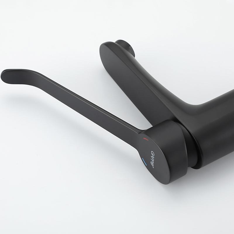 Смеситель для раковины с локтевой (хирургической) ручкой Gappo G1021-6, черный