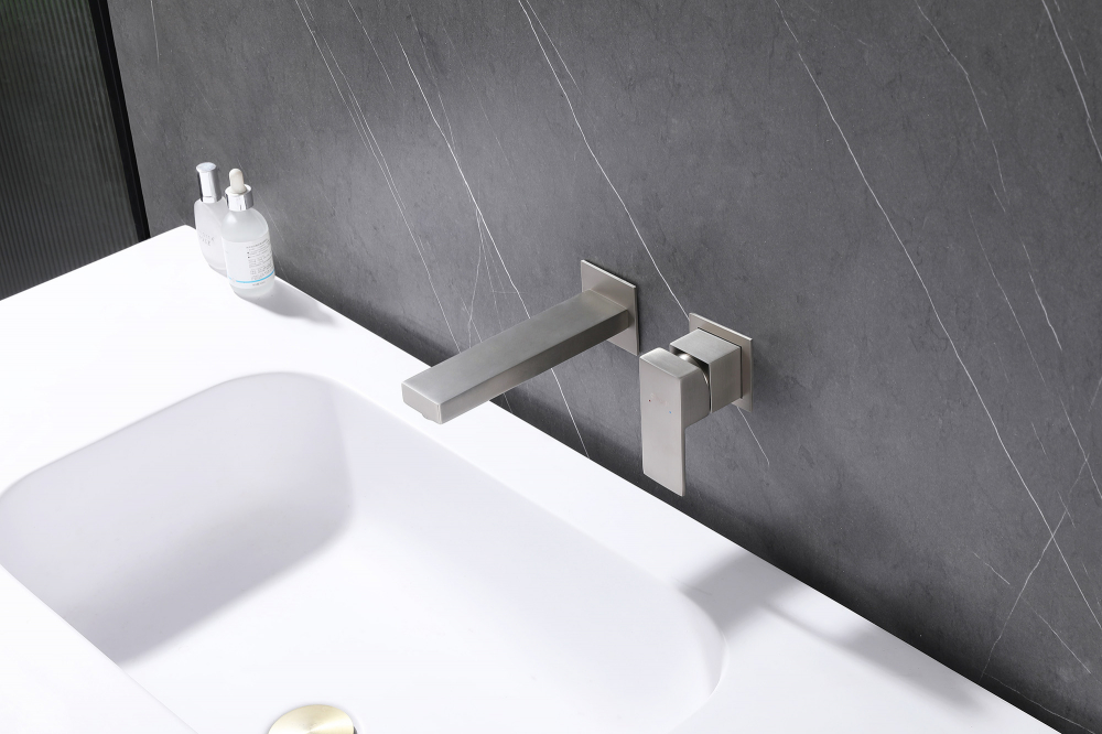 Смеситель для раковины настенный Abber Daheim AF8212SP со скрытой частью в комплекте, материал - латунь, цвет - сатин.