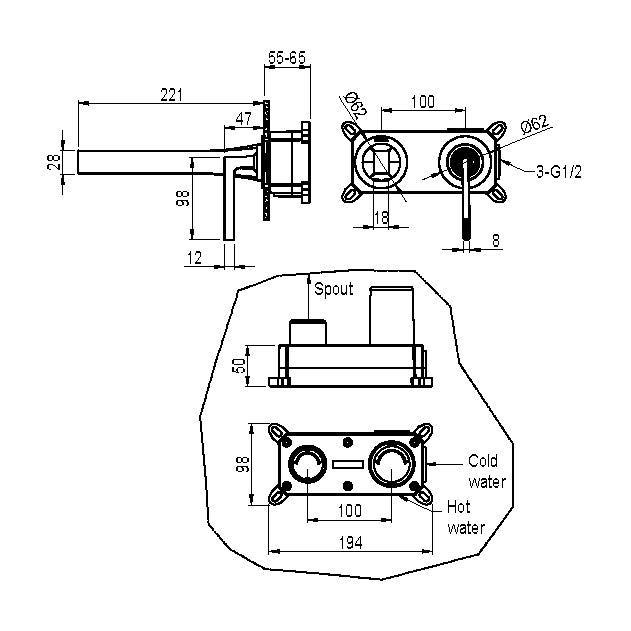 Характеристики смеситель для раковины настенный Boheme (165-CB)