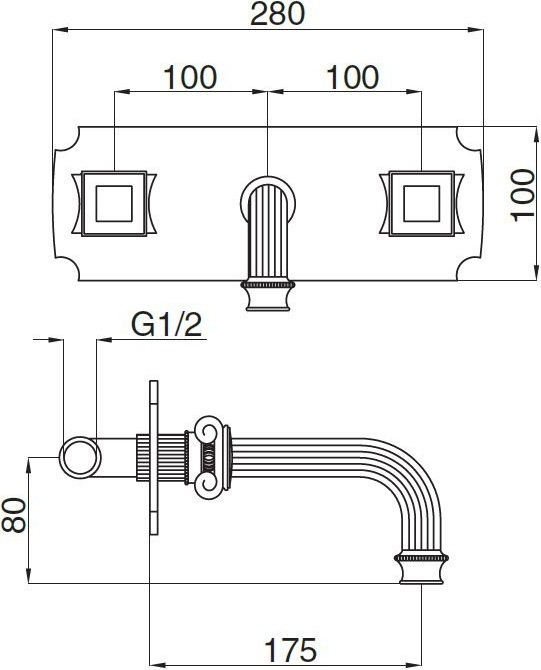 Описание смеситель для раковины настенный Cezares APHRODITE-BLS2-02-Sw