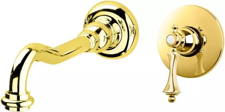 Смеситель для раковины настенный Cezares MARGOT-BLS1-03/24-M со скрытой частью, материал - латунь, цвет - золото 24 карат, ручка - золото 24 карат.