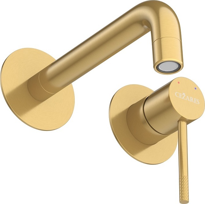 Смеситель для раковины настенный Cezares RELAX-BLI2-1-BORO-W0 (со скрытой частью) брашированное золото