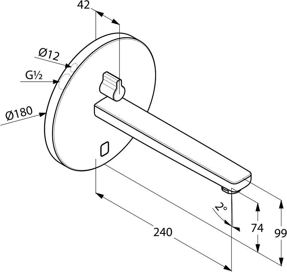 Смеситель для раковины настенный электронный Kludi Zenta 240 мм 3840105, питание от сети 230 V или от литиевой батареи 6V CR-P2, материал - латунь, цвет - хром. Скрытая часть приобретается отдельно.