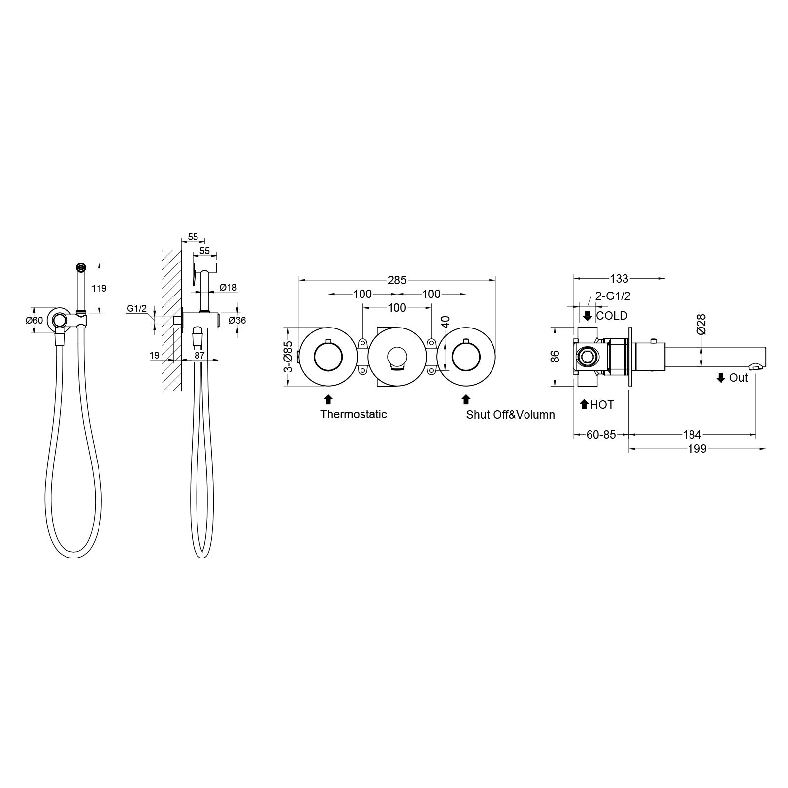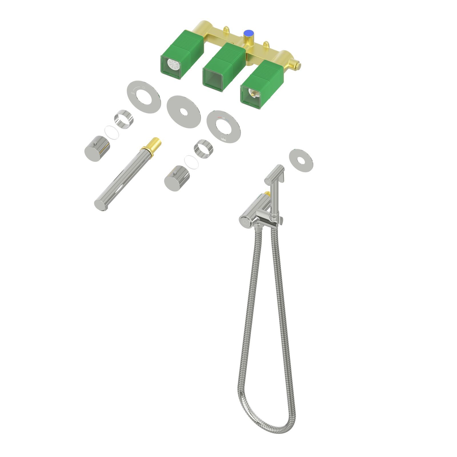 Встраиваемый смеситель с функцией подключения гигиенического душа Timo Saona 2383 предназначен для монтажа в твердой или полой стене. Встроенный блок может быть установлен с левым или правым подключением гигиенического душа. Гигиенический душ можно установить автономно на любом расстоянии от смесителя. Для использования гигиенического душа включать смеситель не требуется. Подача воды на гигиеническую лейку осуществляется нажатием кнопки, расположенной на корпусе держателя лейки. В смесителе установлен термостатический картридж для поддержания стабильной температуры воды в смесителе и гигиеническом душе. Подача воды и увеличение напора в смесителе осуществляется поворотом ручки расположенной справа (при установке душа слева). Сложностей монтажа не возникает при установке смесителя опытным сантехником. Основные преимущества встроенного смесителя: коммуникации, крепления и механизмы спрятаны в стену и видны только декоративные элементы, установить встроенный смеситель можно в любом месте.