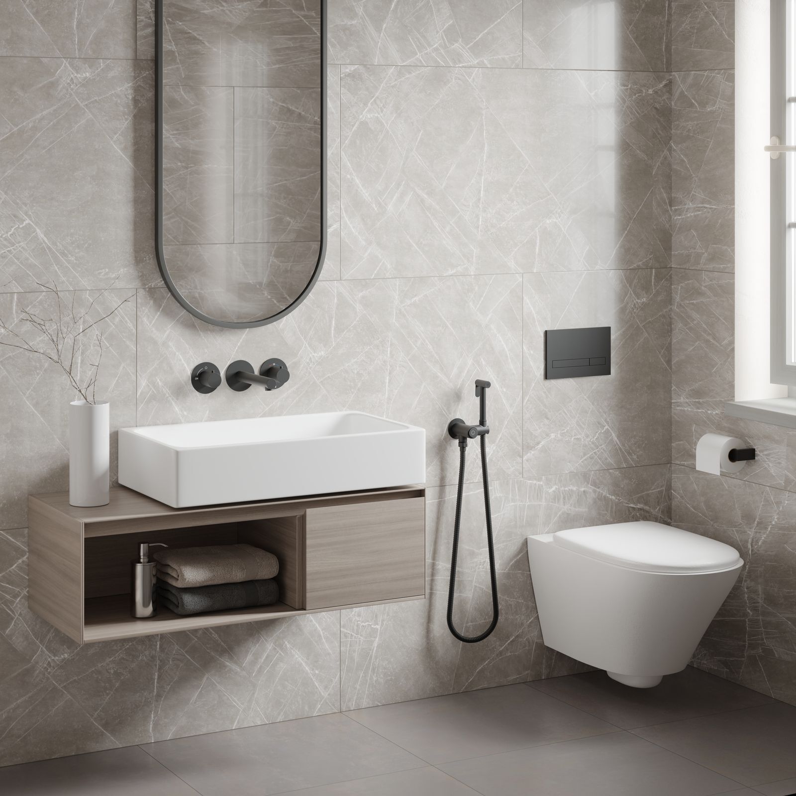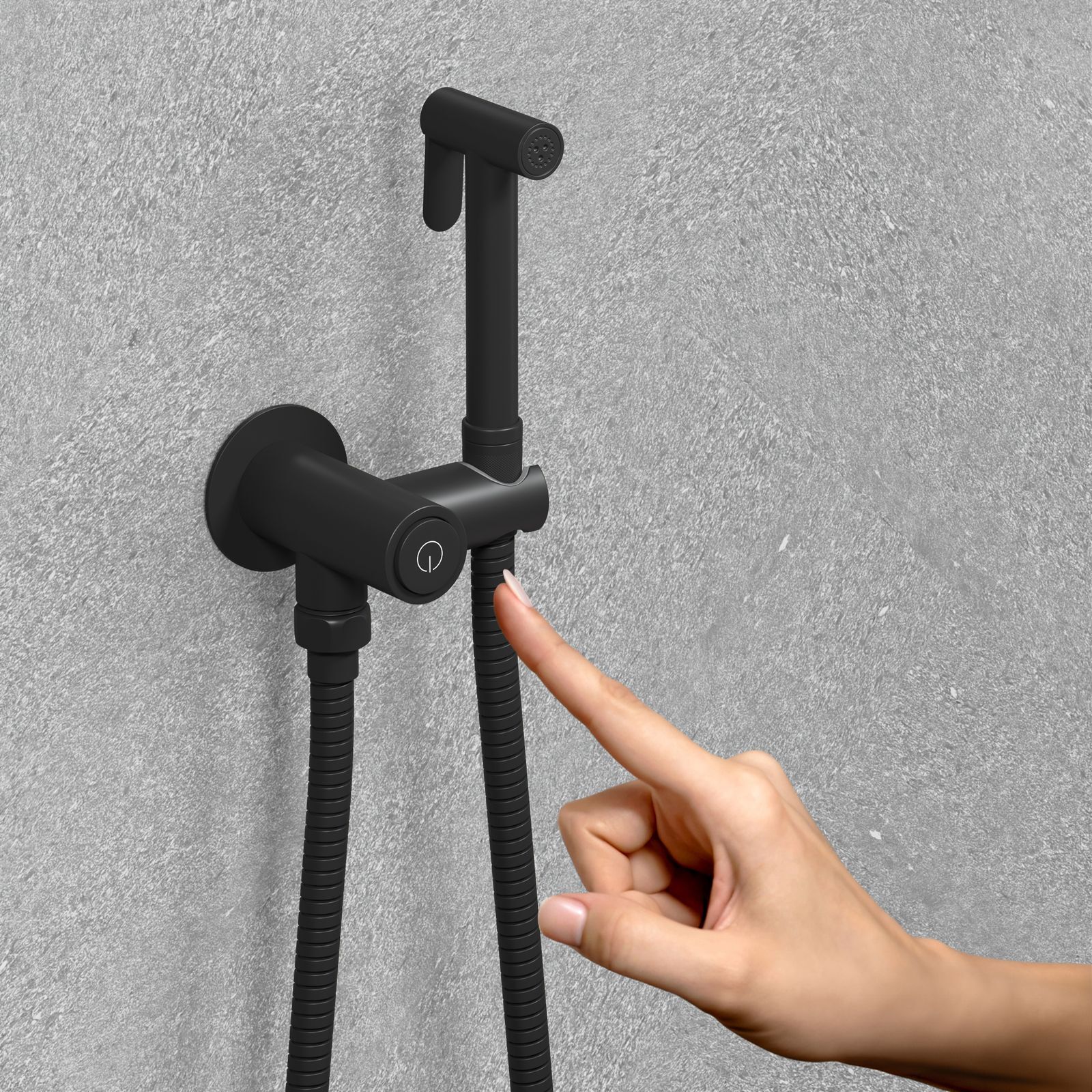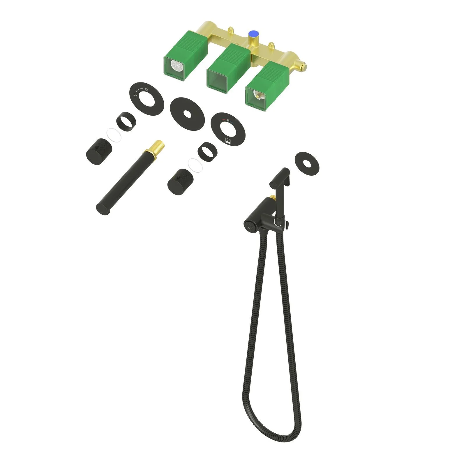 Смеситель для раковины настенный с термостатом и с гигиеническим душем Timo Saona 2383/03SM (со скрытой частью) чёрный матовый