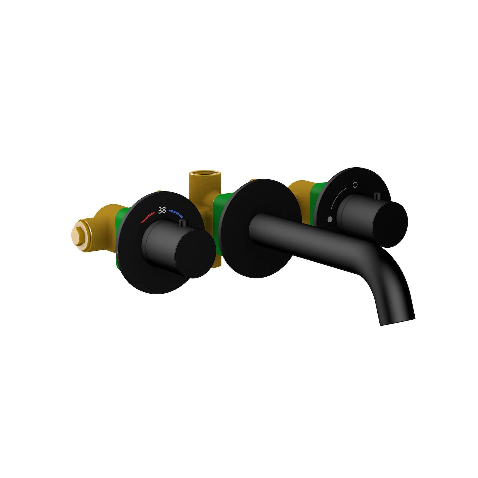 Смеситель для раковины настенный с термостатом Timo Saona 2381/03SM (со скрытой частью) чёрный матовый